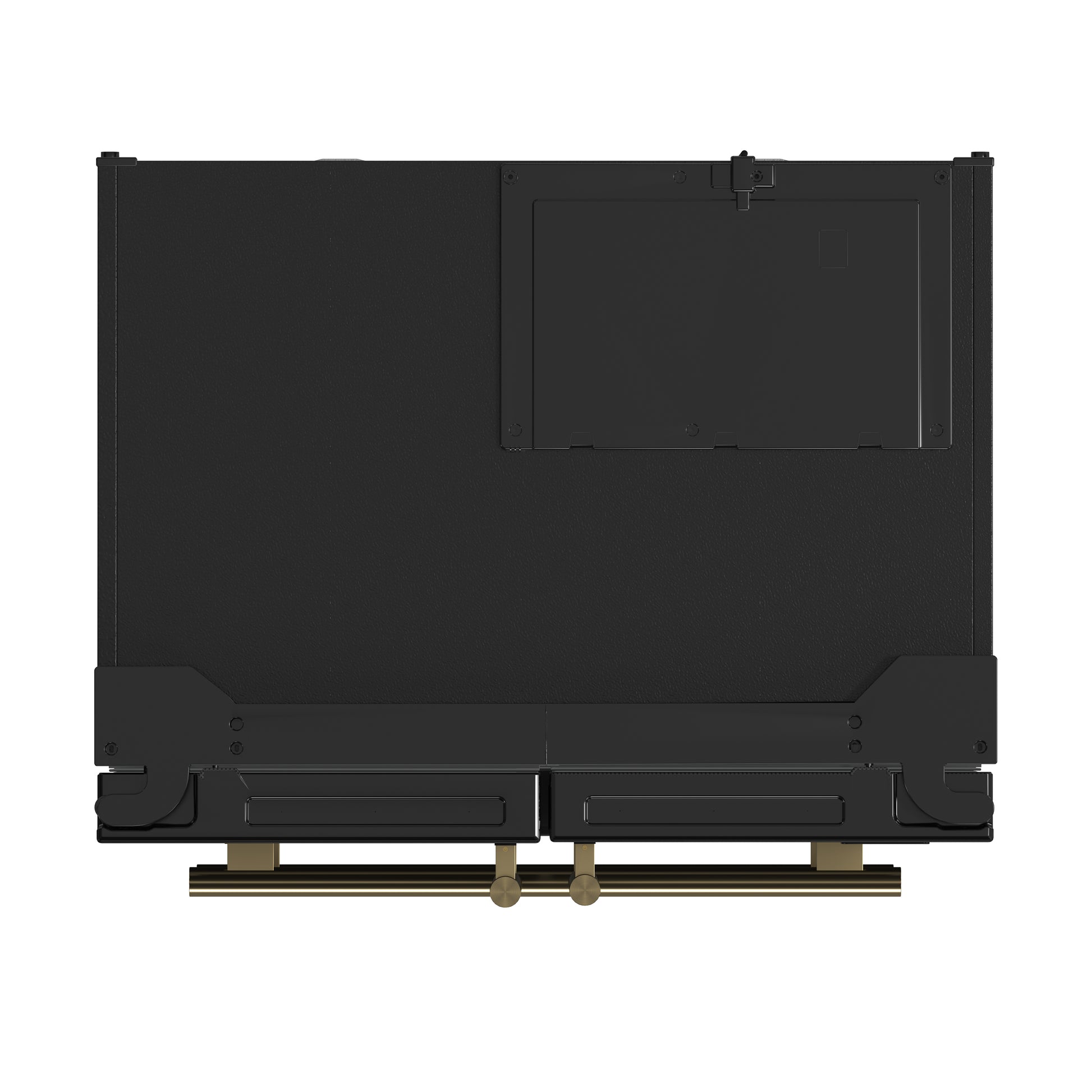 * Las elegantes puertas con acabado negro y manijas de latón antiguo brindan una opción elegante y personalizable.