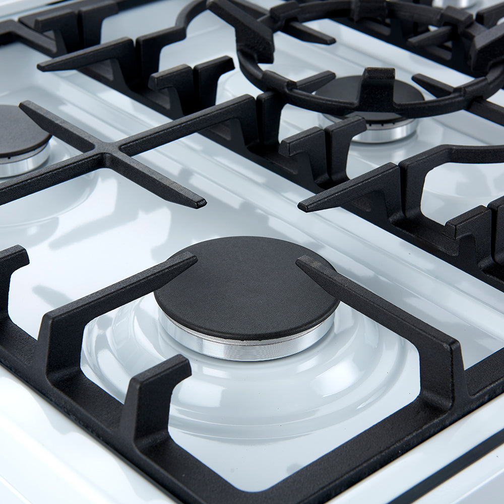 * Las rejillas de hierro fundido continuas garantizan estabilidad y movilidad para los utensilios de cocina tanto dentro como fuera de la fuente de calor.
