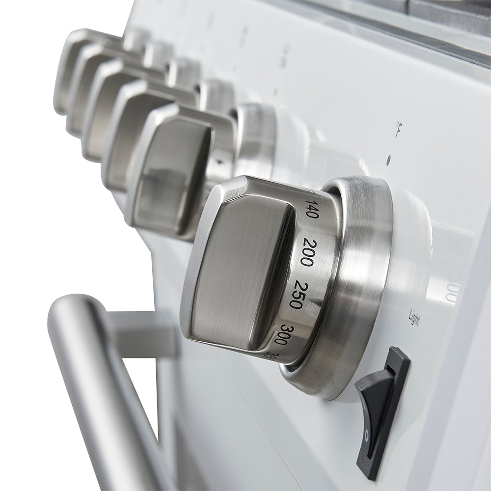 * Horno de convección de 5 pies cúbicos con potencia total de 22,500 BTU para asar y hornear.