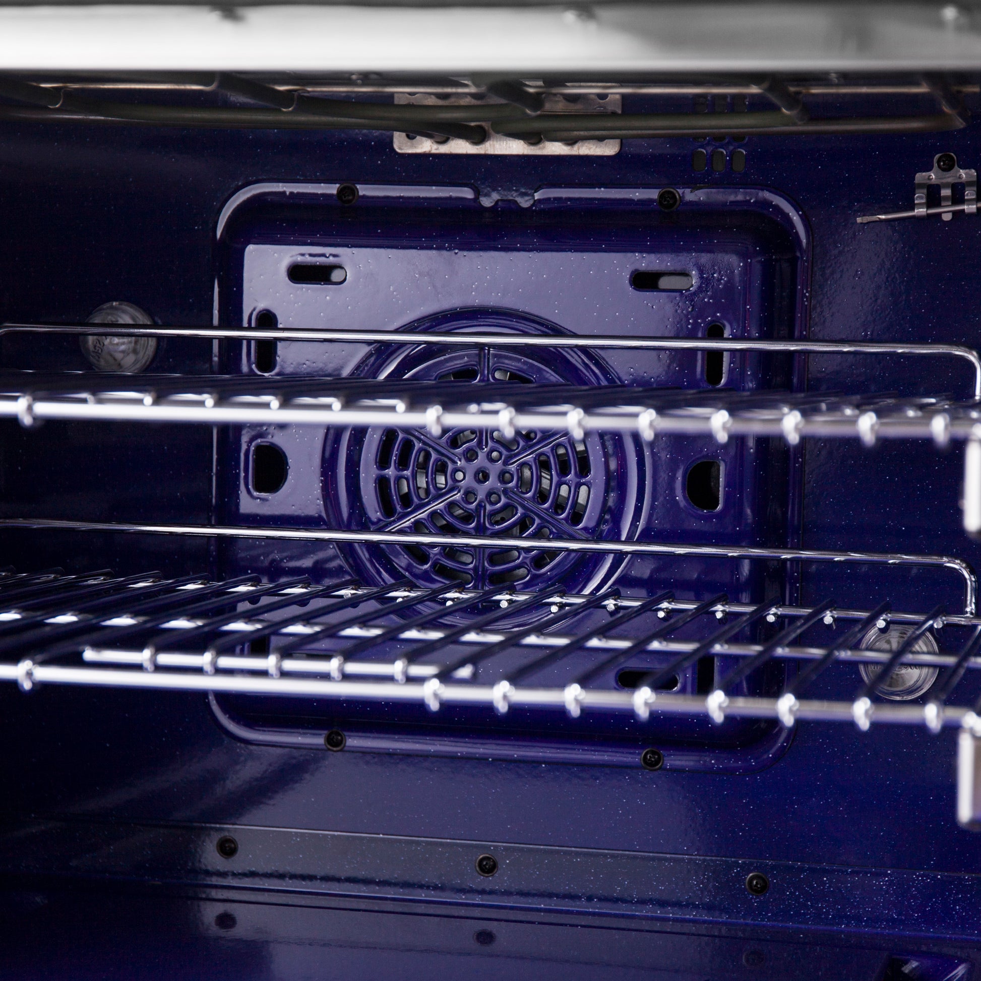 * 2 hornos de convección con ventilador de 4,32 pies cúbicos con una potencia total de 6300 vatios para asar y hornear cada uno.