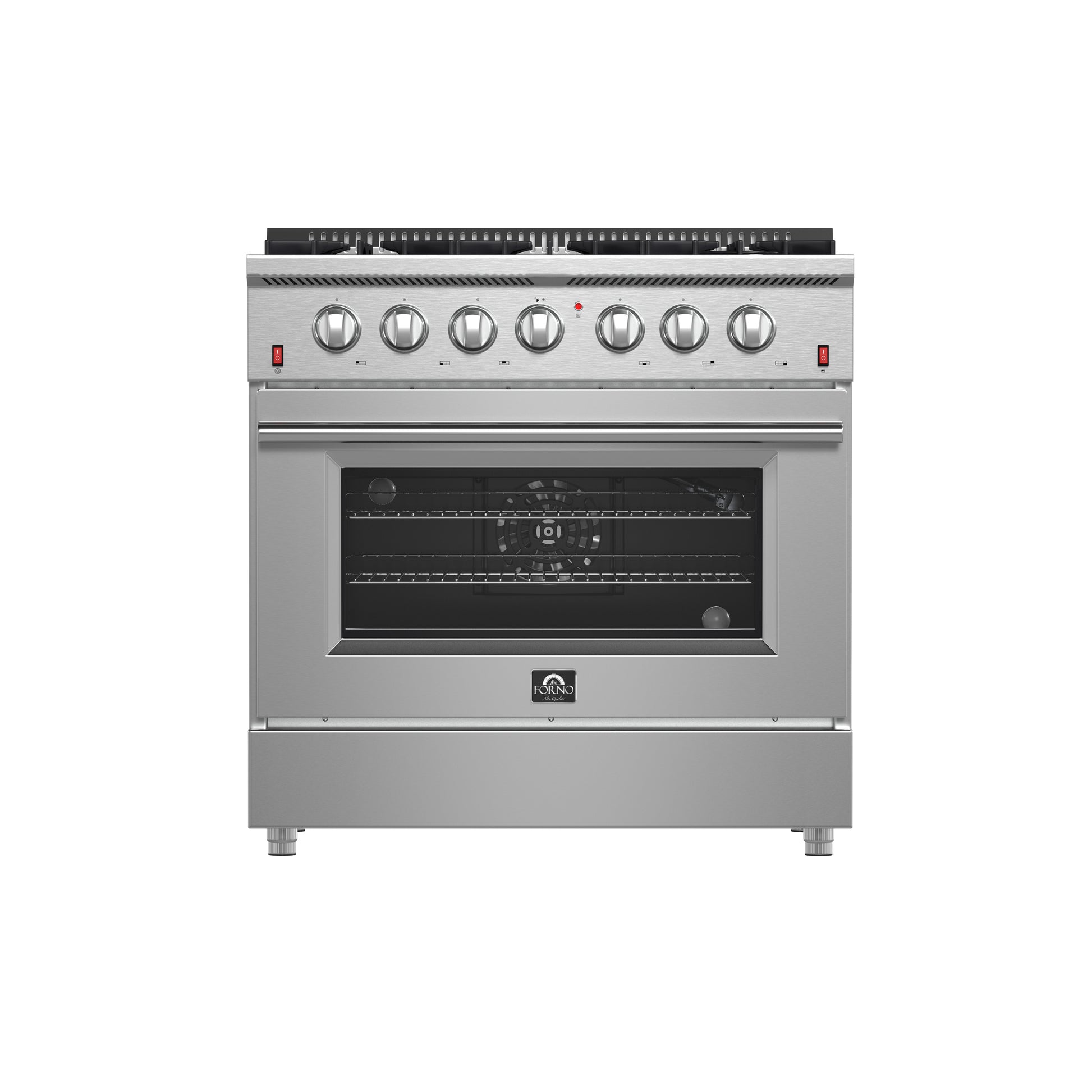 Cocina a gas independiente Forno Galiano de 36 pulgadas, acero inoxidable, 6 quemadores, de bajo consumo