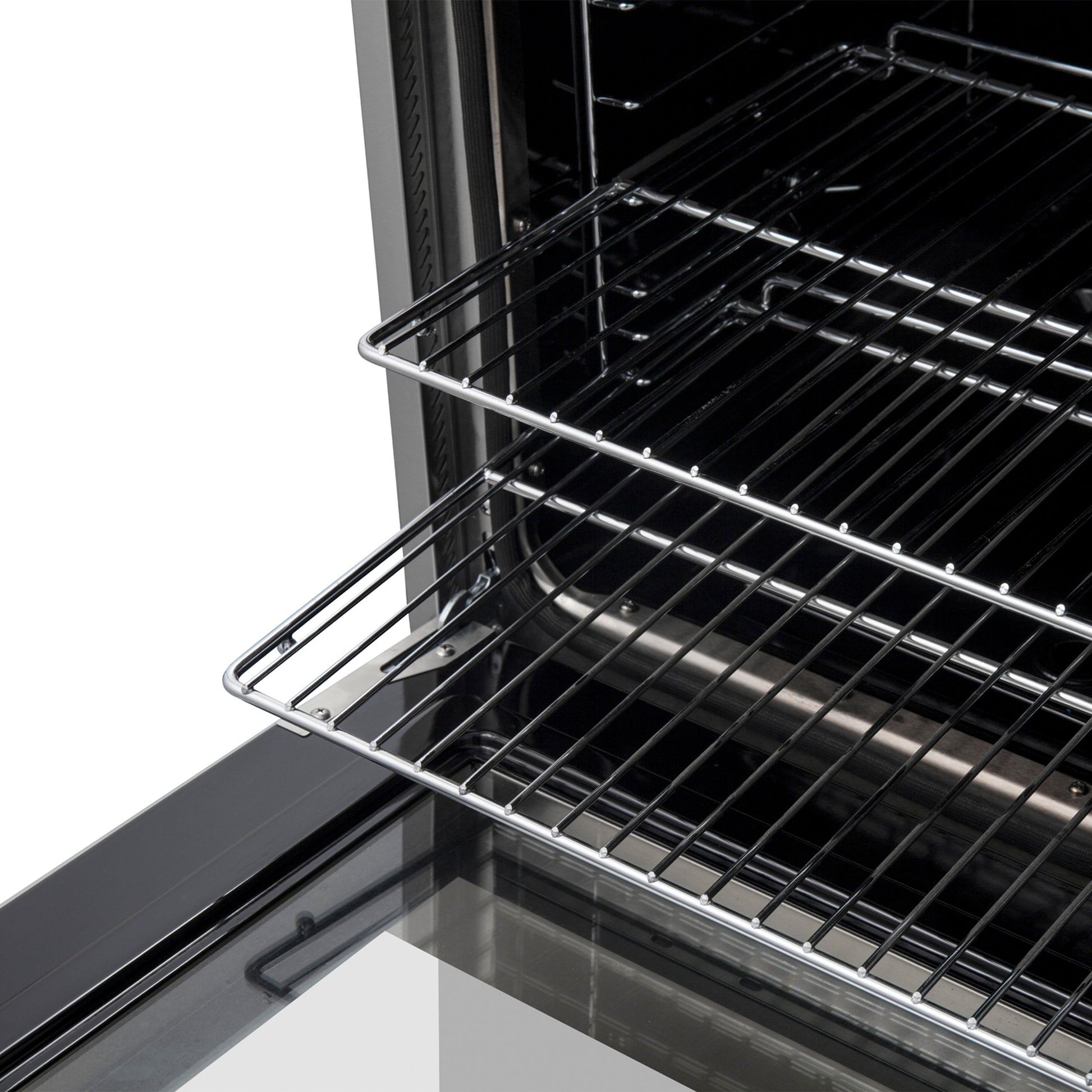* Las rejillas de hierro fundido duraderas brindan estabilidad a los utensilios de cocina y garantizan un movimiento suave a lo largo de la superficie de cocción.