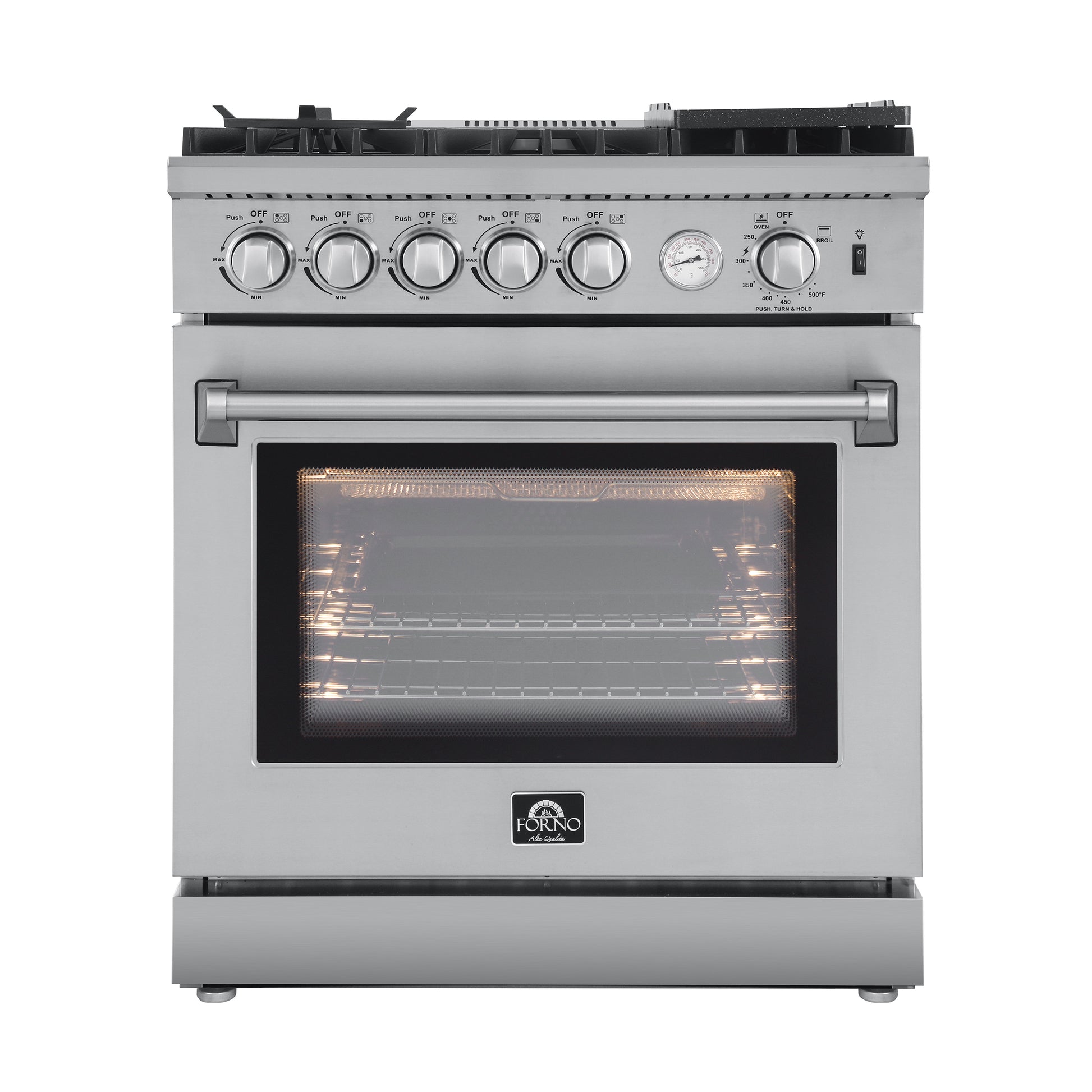 * Horno de convección con ventilador de 4,32 pies cúbicos con una potencia total de 26 000 BTU para asar y hornear