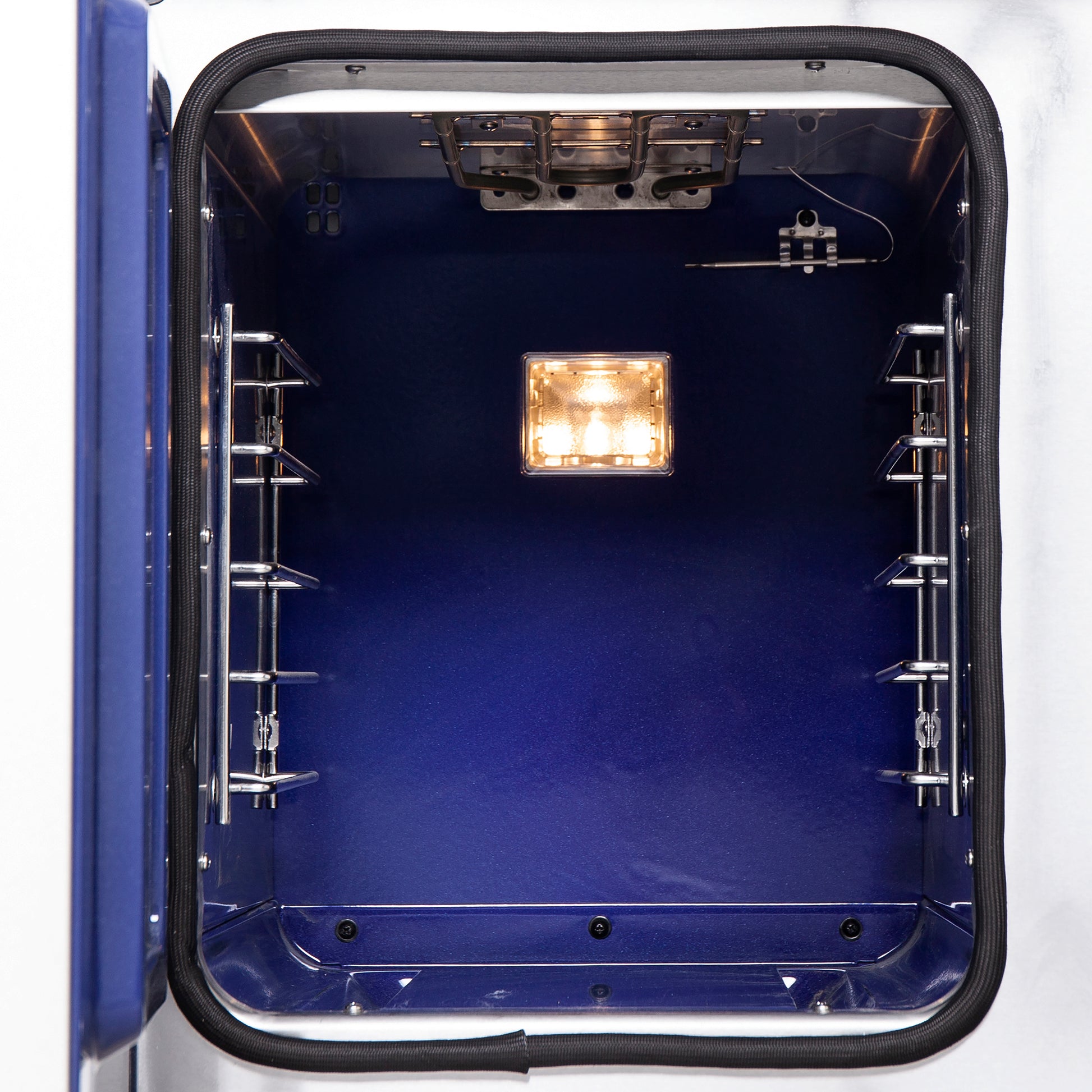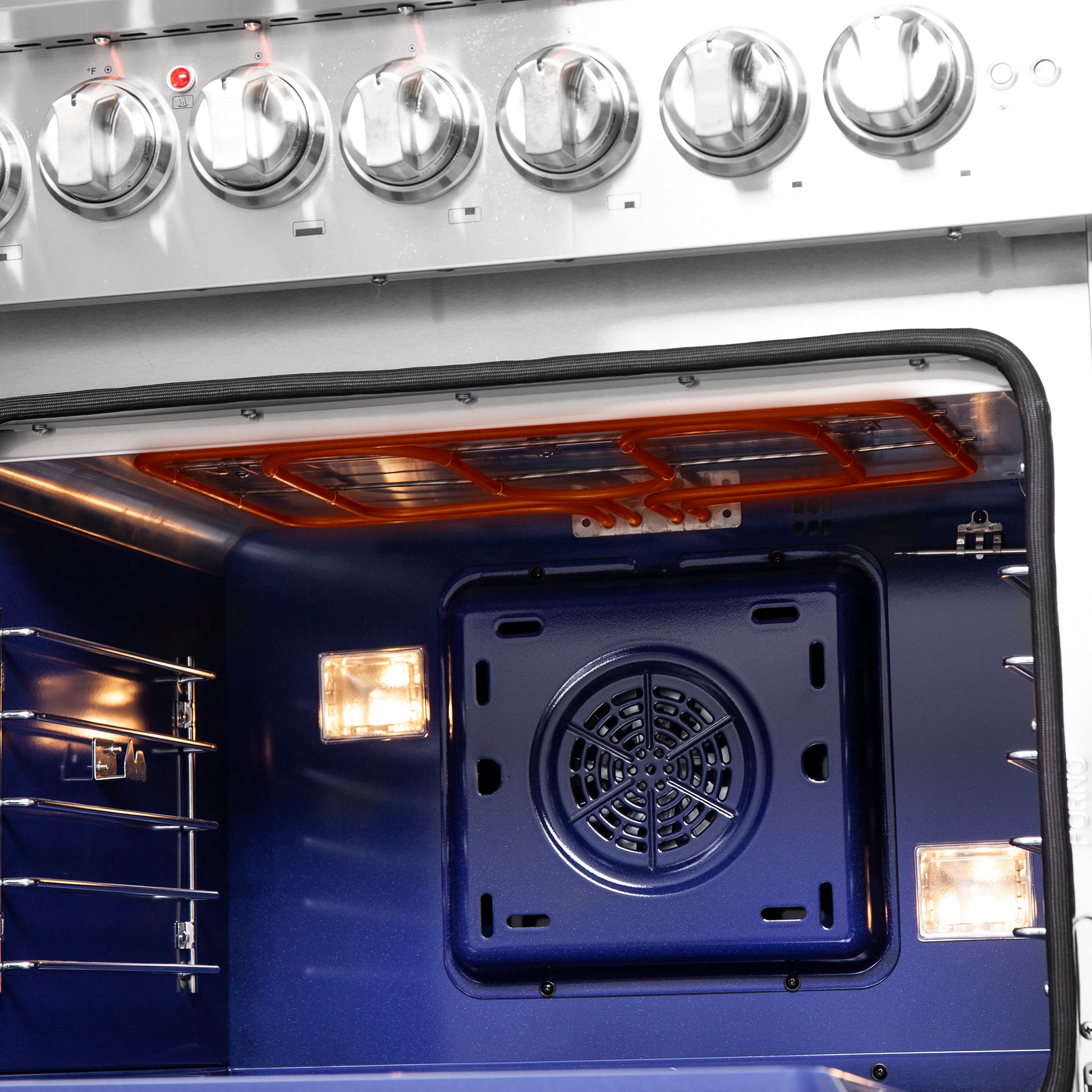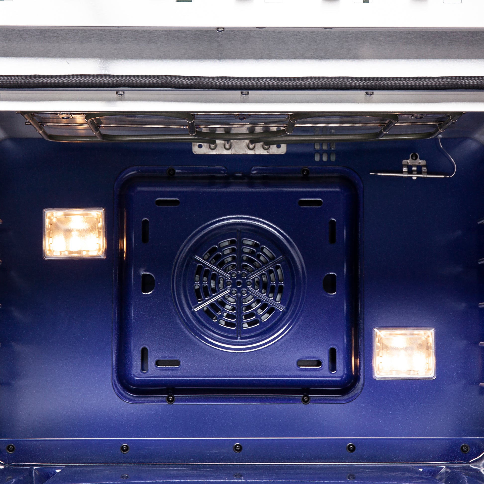 * Horno de convección con ventilador real de 4,32 pies cúbicos con potencia total para asar y hornear de 6300 W.