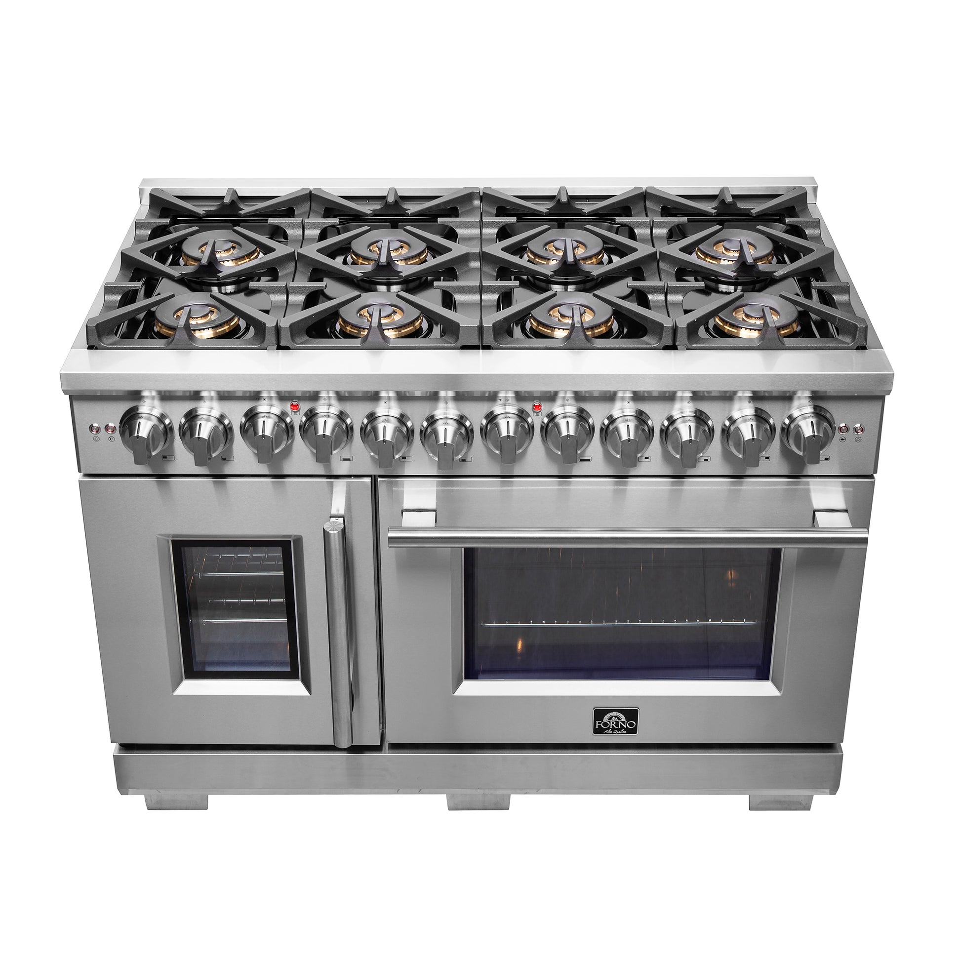 Cocina independiente de 48 pulgadas con puerta francesa y doble combustible, Forno Capriasca, 8 quemadores y horno de convección real