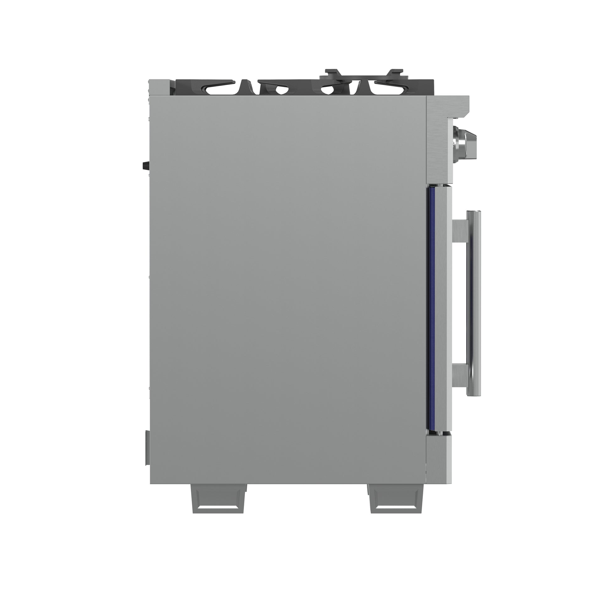 Cocina a gas independiente Forno Capriasca de 76 cm con puerta francesa, 4 quemadores, horno de convección y eficiencia energética.