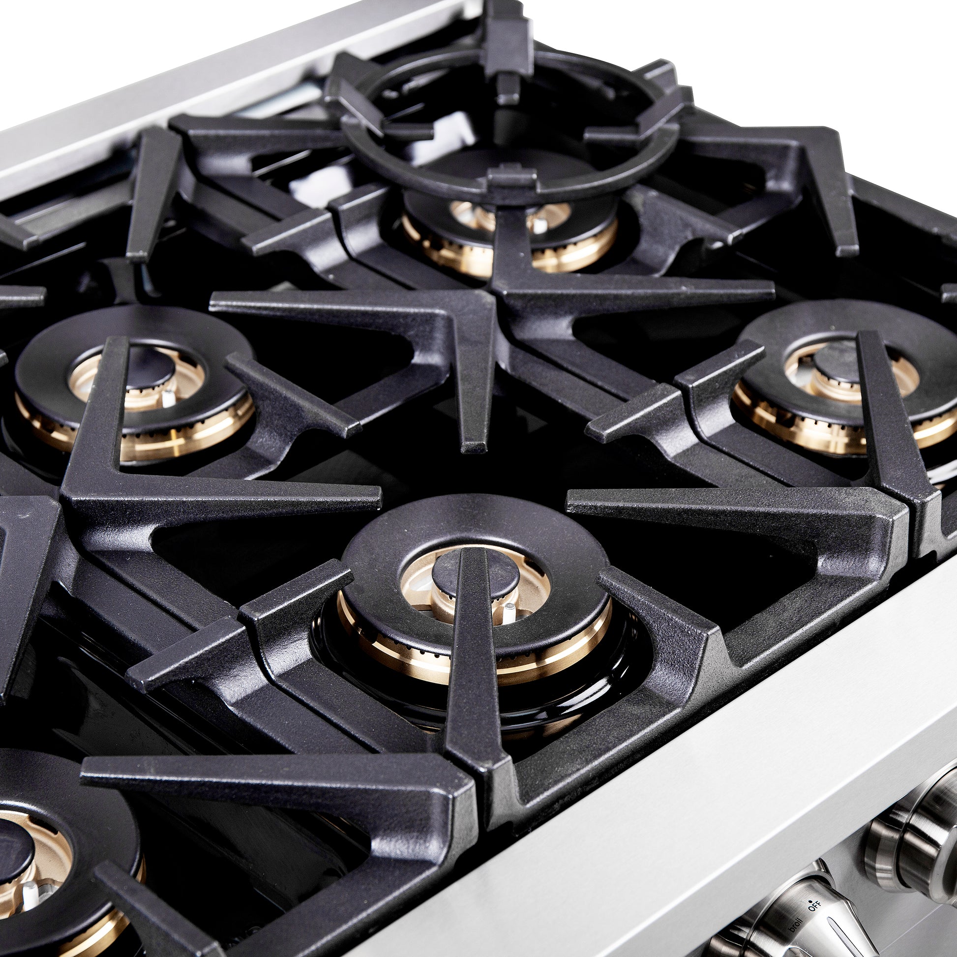 * 6 quemadores de latón de anillo doble sellados combinan una estufa total de 120.000 BTU.