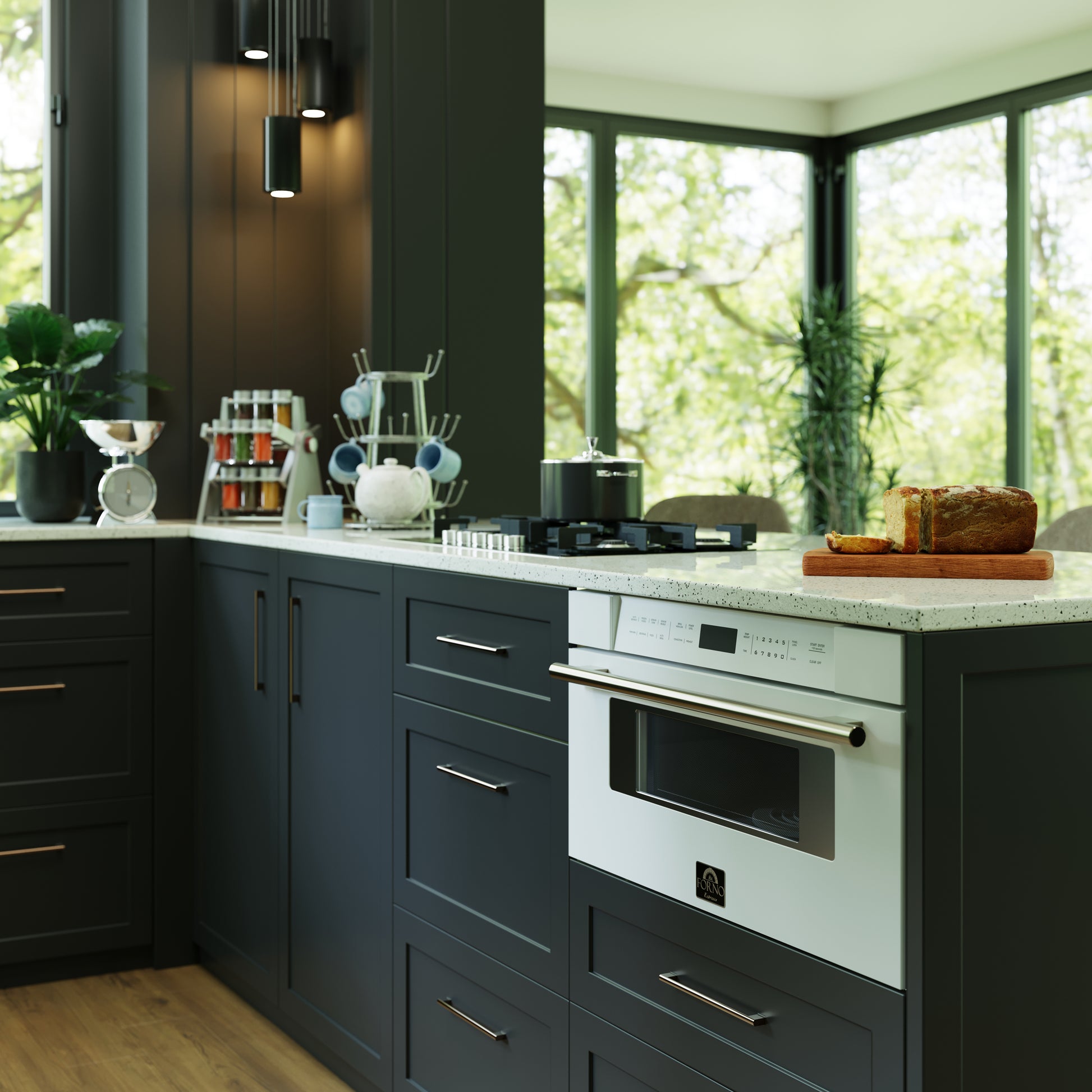 Microondas Forno Capoliveri Espresso de 30 pulgadas, blanco, 1.2 pies cúbicos, 1000 vatios, integrado, pantalla LCD táctil, apertura y cierre automáticos, 11 niveles de potencia, sensor de cocción