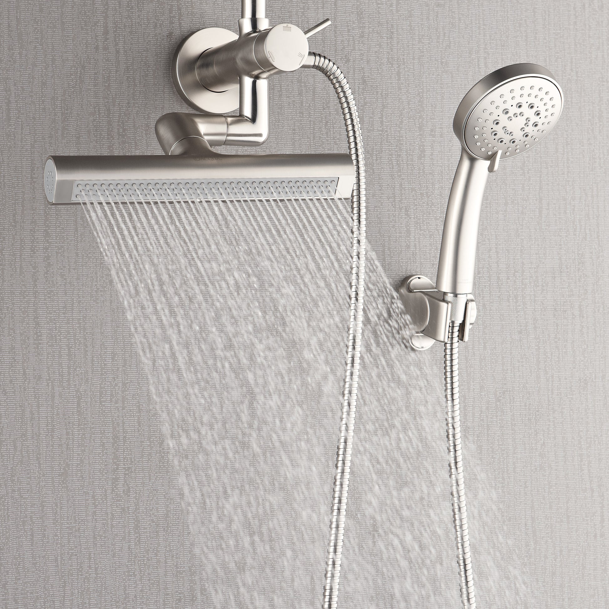 Forno Acqua AcquaFALL Mini Shower Head, Brushed Nickel Finish, Overhead Rainfall Shower, 7 Way Diverter, Handheld Shower Head, Body Jets, 1.8 GPM Flow Rate