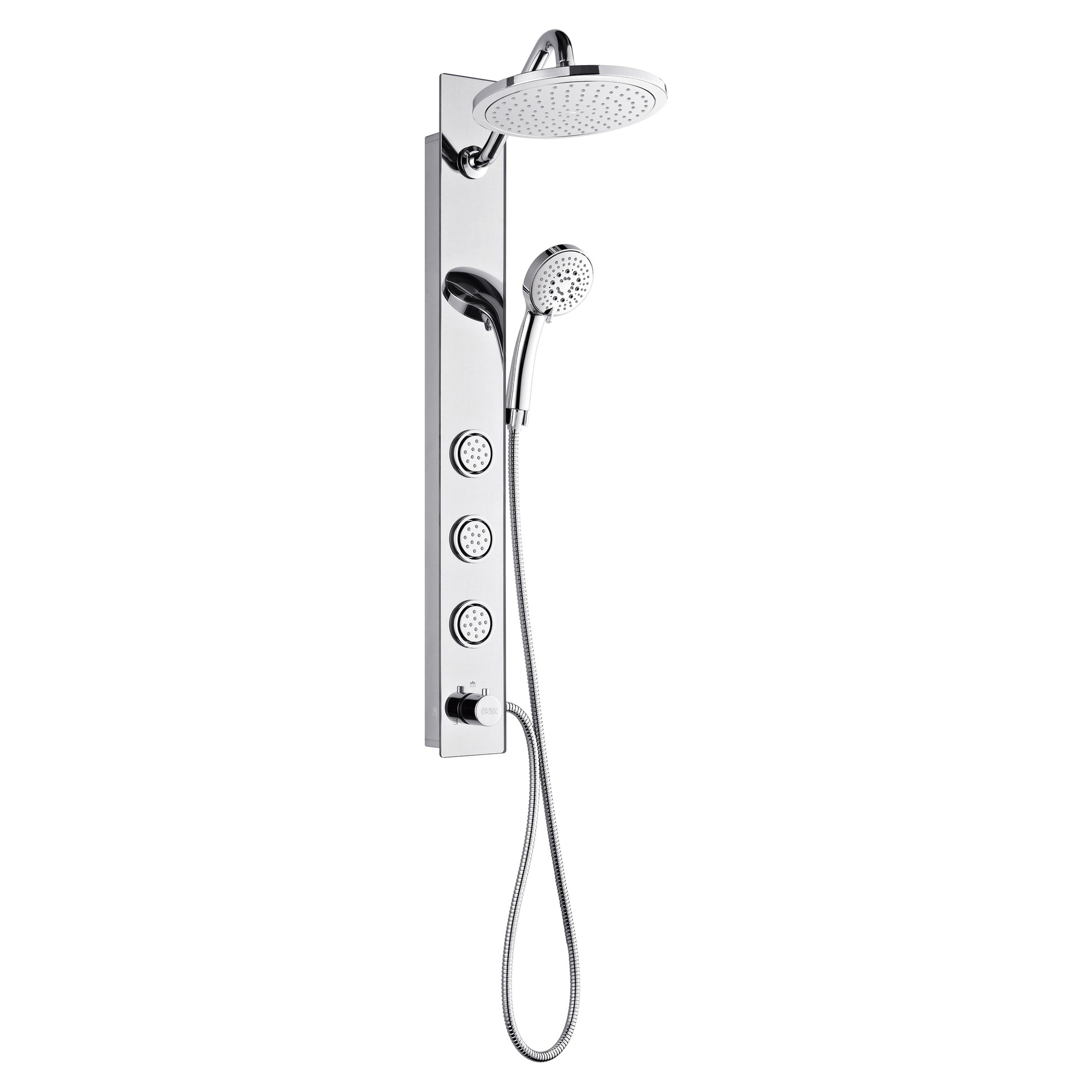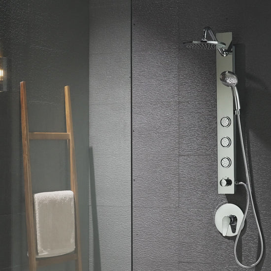 Forno Acqua AcquaSPA Shower Panel with SensoTEMP, Mirrored Stainless Steel Finish, Overhead Rainfall Shower, Handheld Shower Head, Body Jets, 1.8 GPM Flow Rate