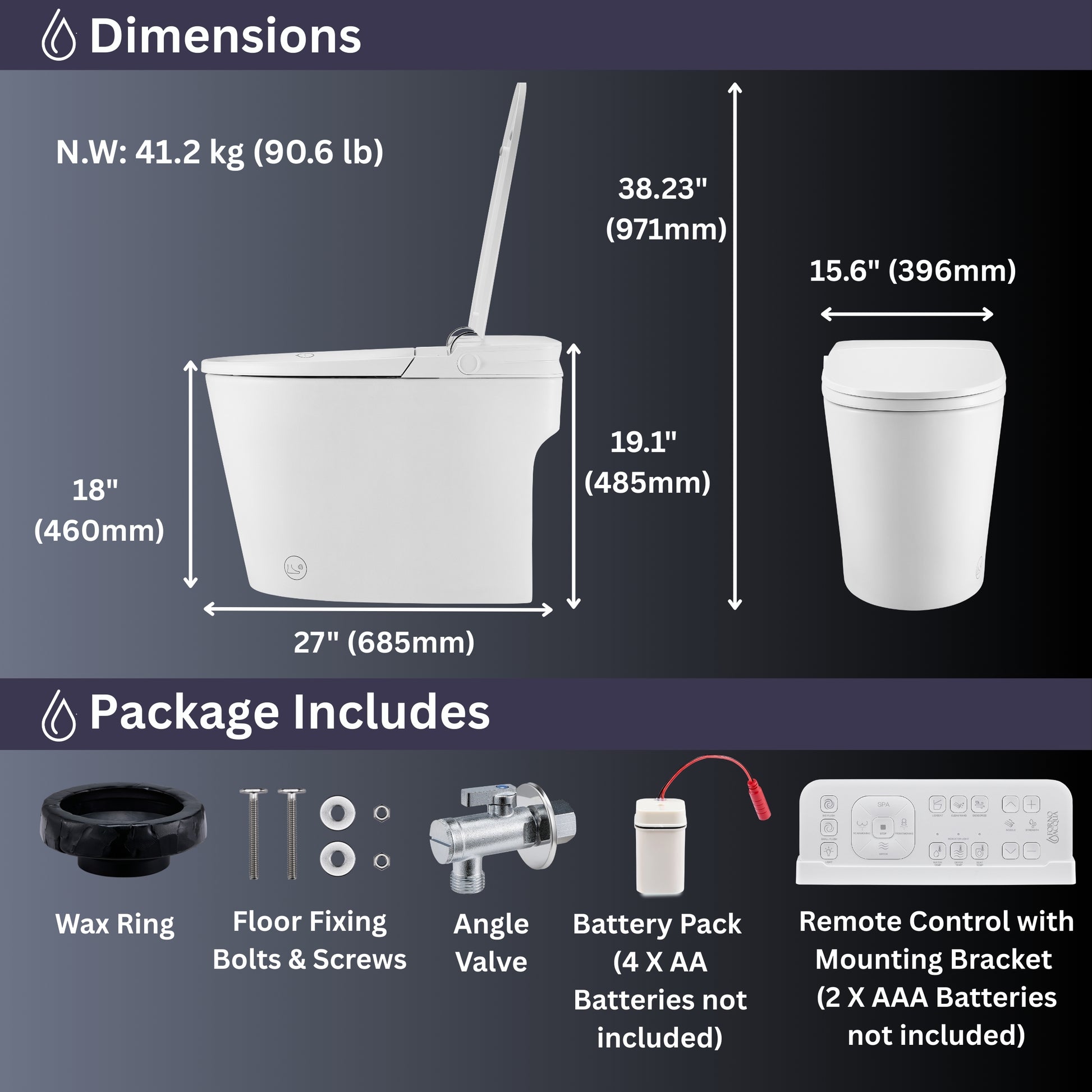 * AcquaSMART Advanced Technology - automatic lid open & close, foot sensor seat open & close and lid close for seamless, hands-free convenience