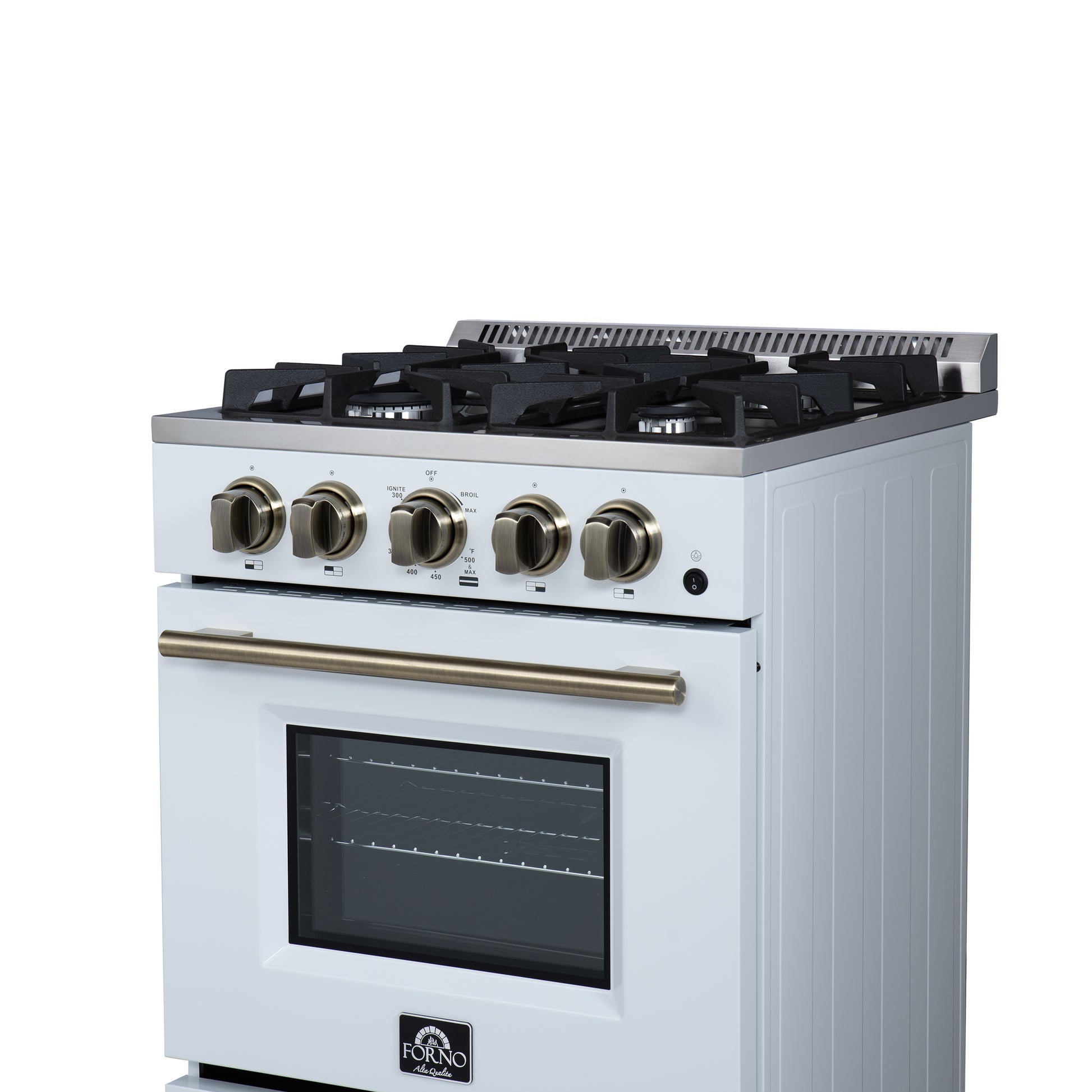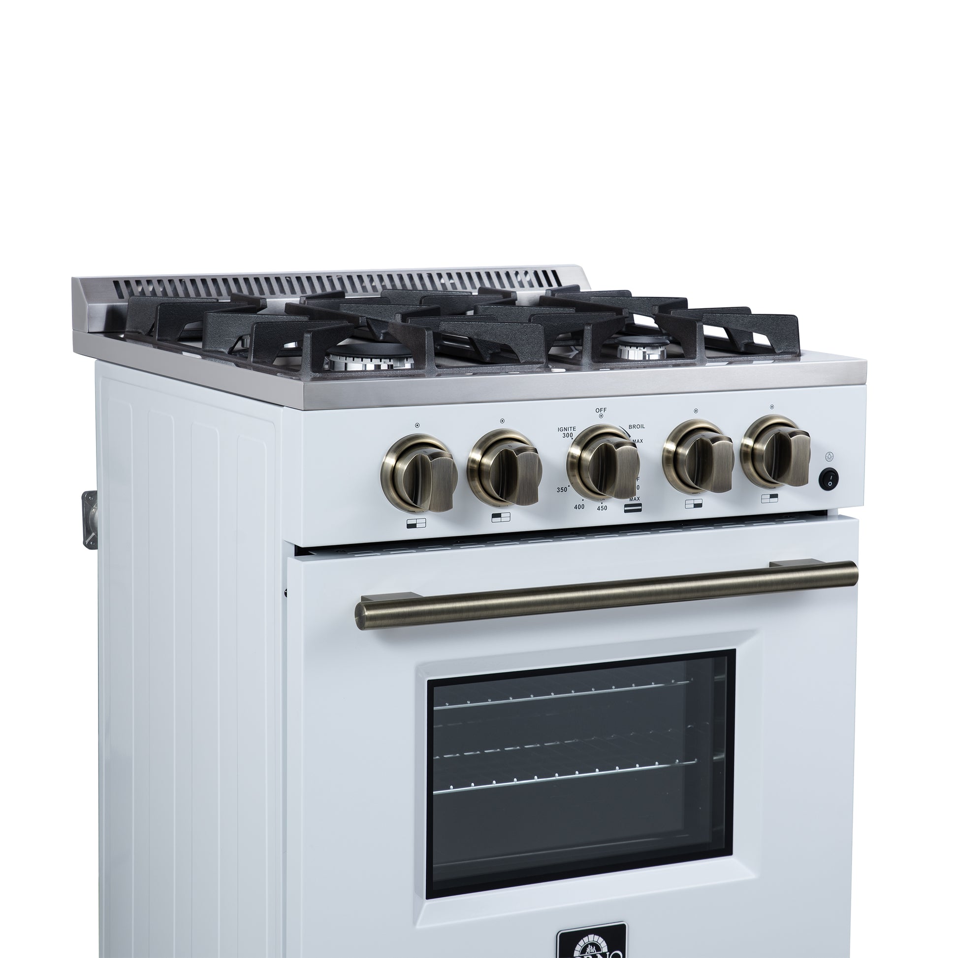 Forno Breno 24 Inch Freestanding Gas Range in White with Antique Brass, Plug Included, Energy Efficient
