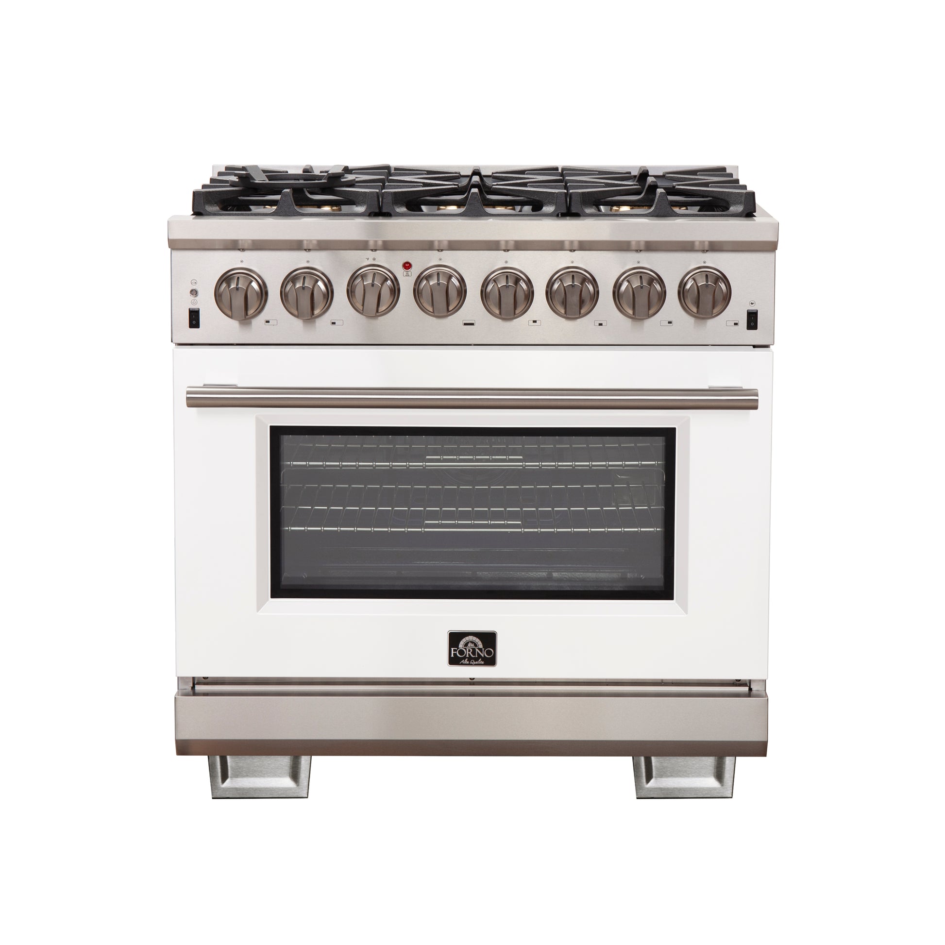 Forno Capriasca 36-Inch Freestanding Dual Fuel Range, 6 Burners, True Convection Oven, White Door