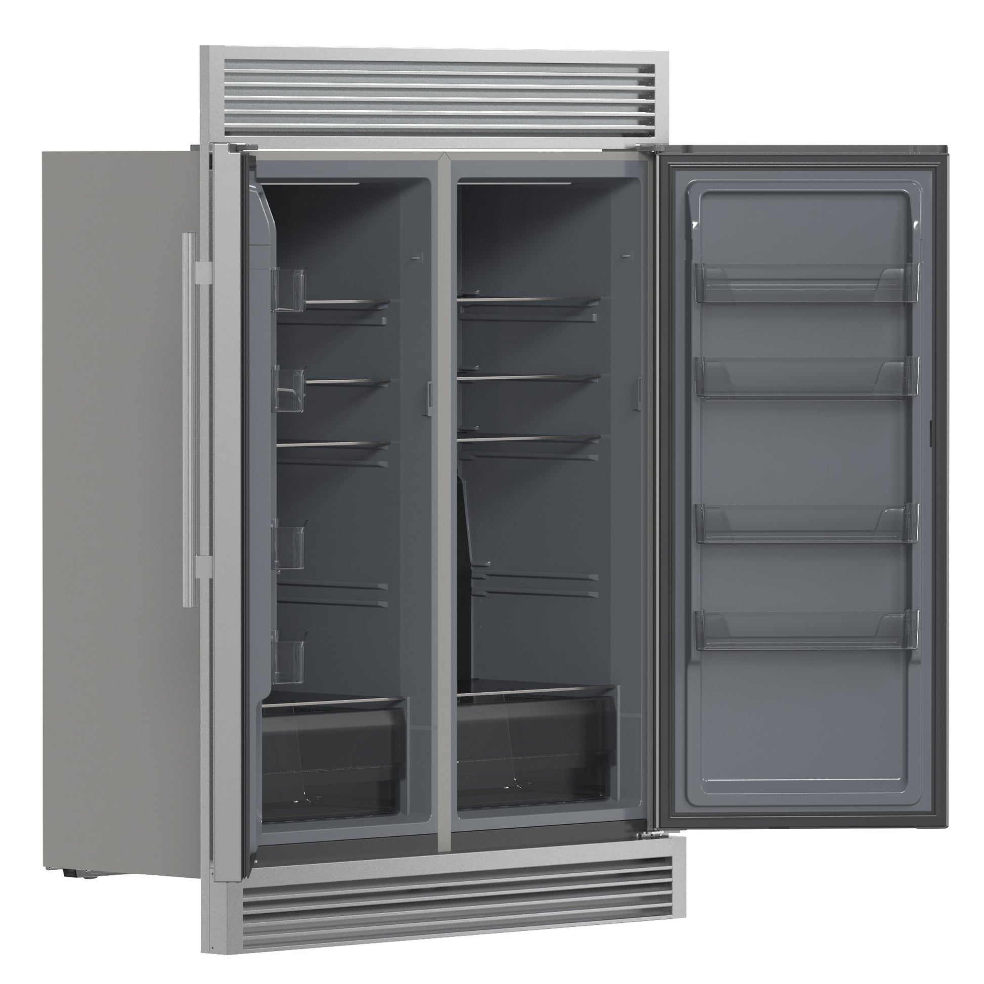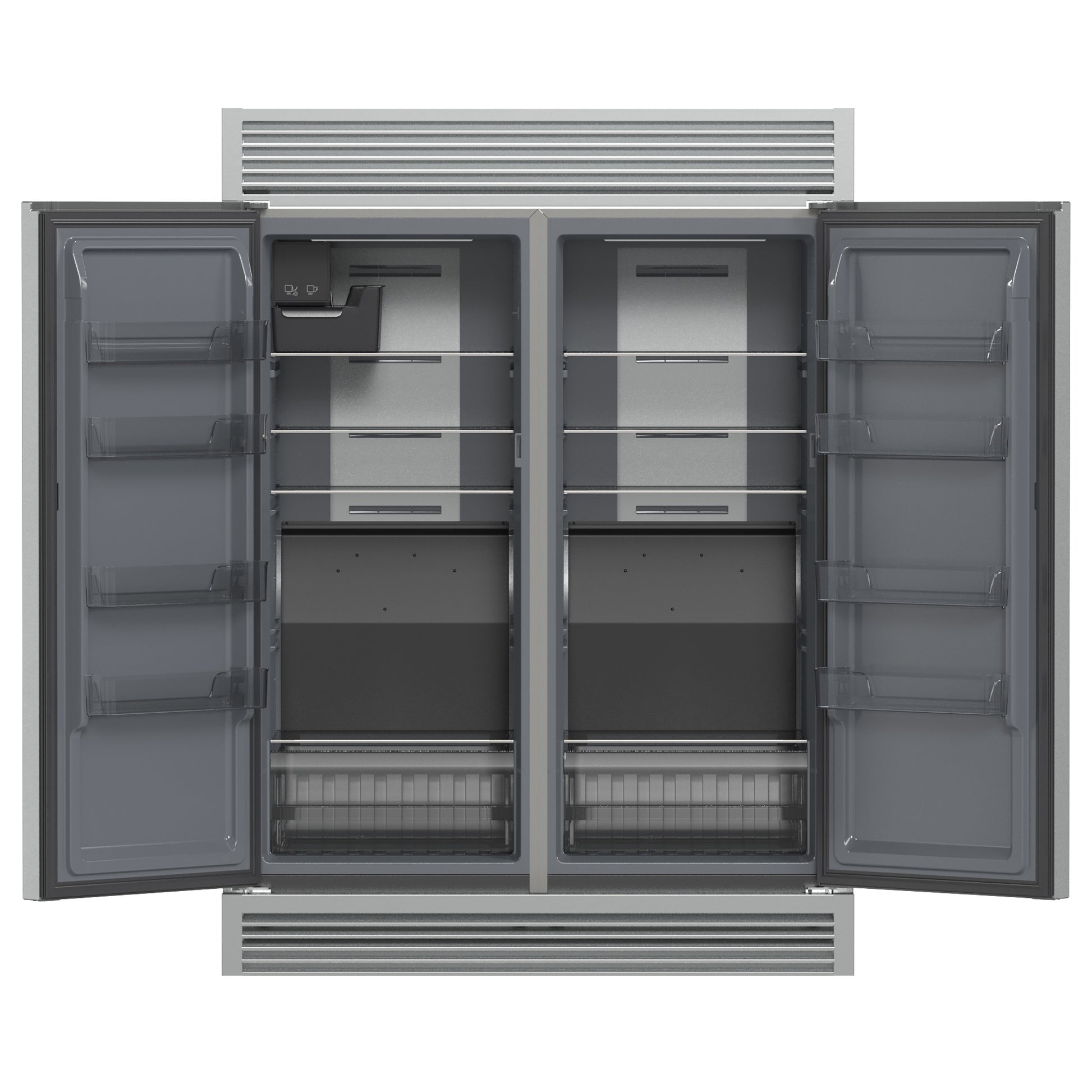 * Ambos refrigeradores/congeladores de 28 pulgadas con rejilla decorativa se extienden hasta un ancho de 60 pulgadas, lo que le da la apariencia de un refrigerador empotrado.