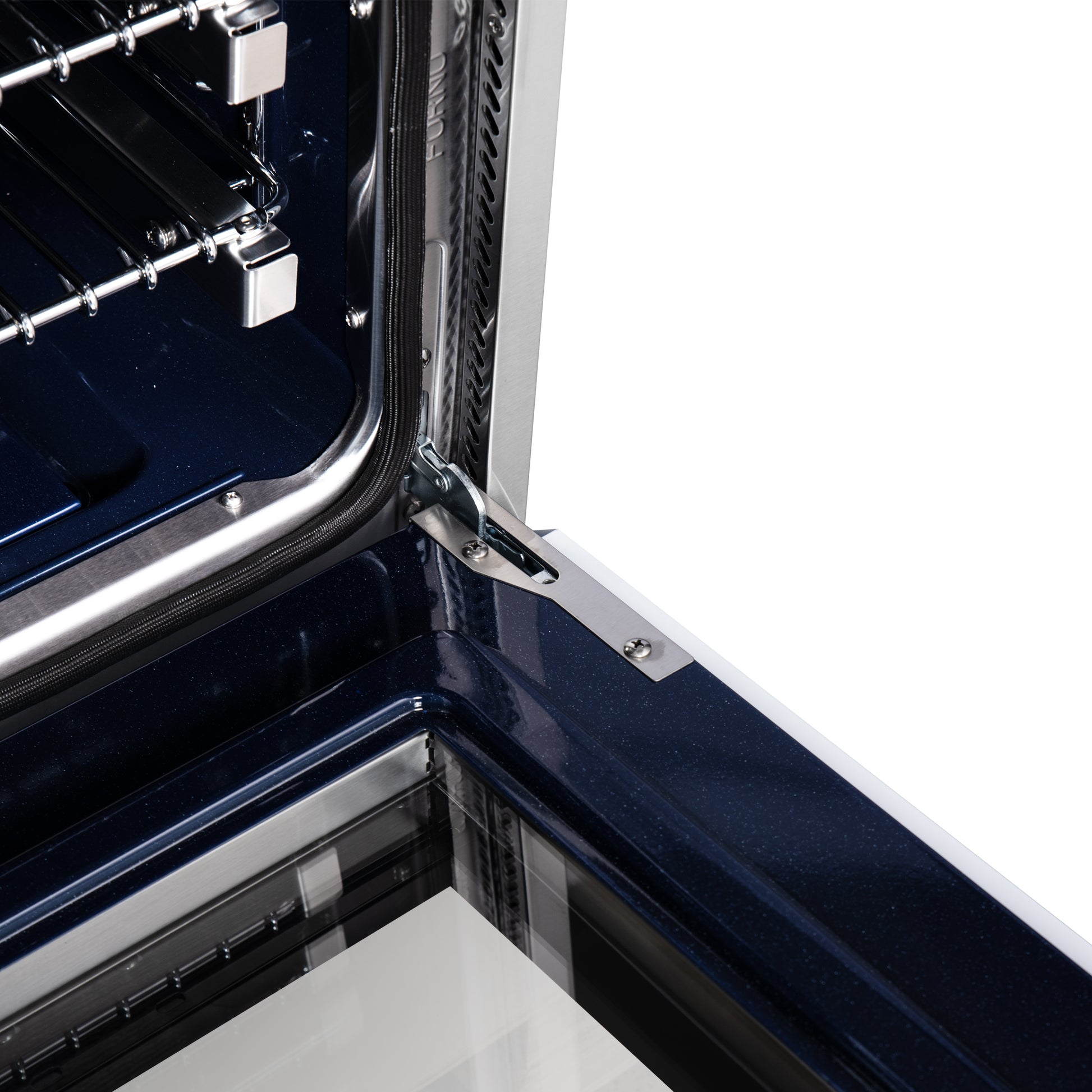 Cocina independiente de combustible dual Forno Massimo de 30 pulgadas en blanco con accesorios de latón antiguo, 4 quemadores, horno de convección de 4.32 pies cúbicos