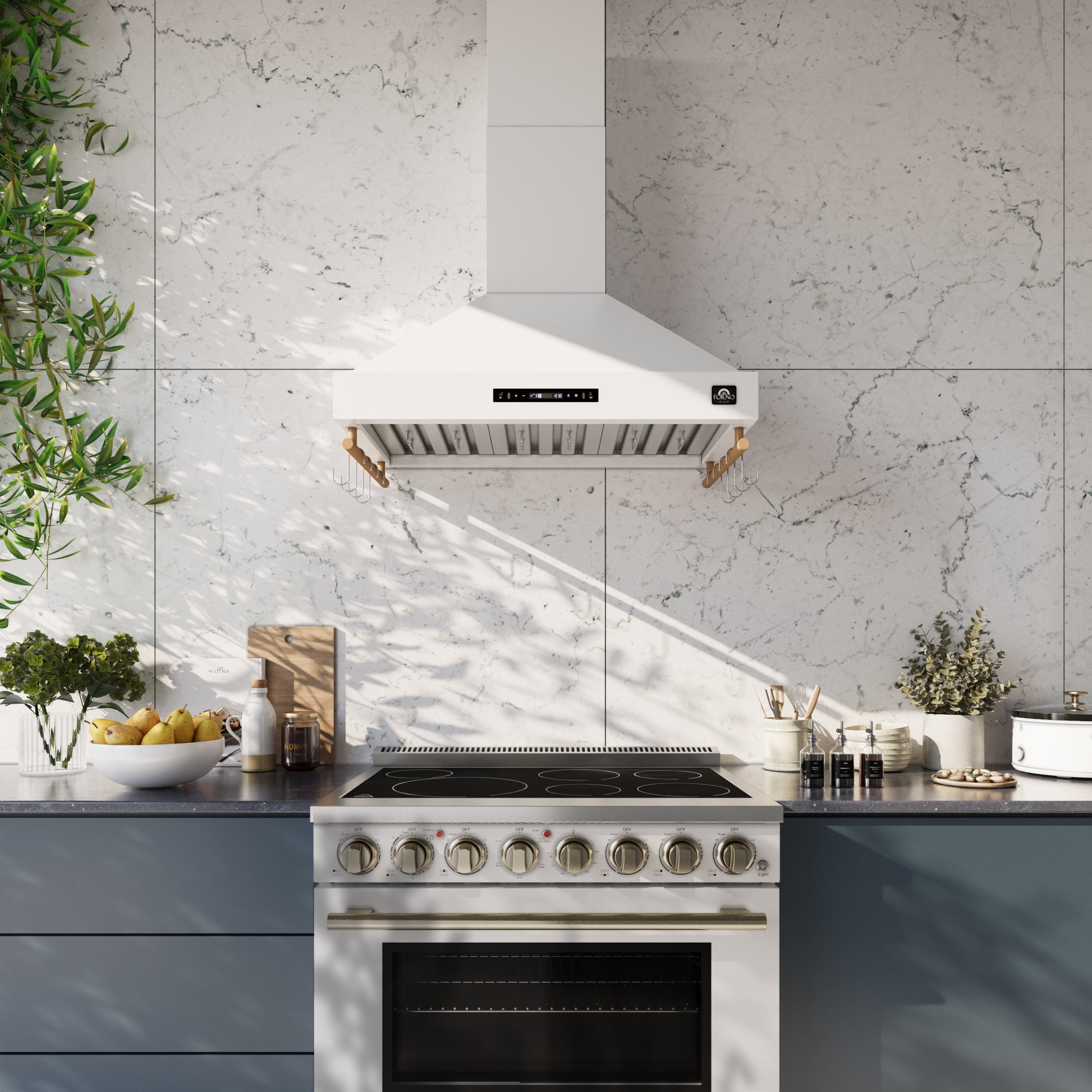 Campana extractora de pared Forno Venezia de 36 pulgadas en blanco con controles táctiles y filtros deflectores