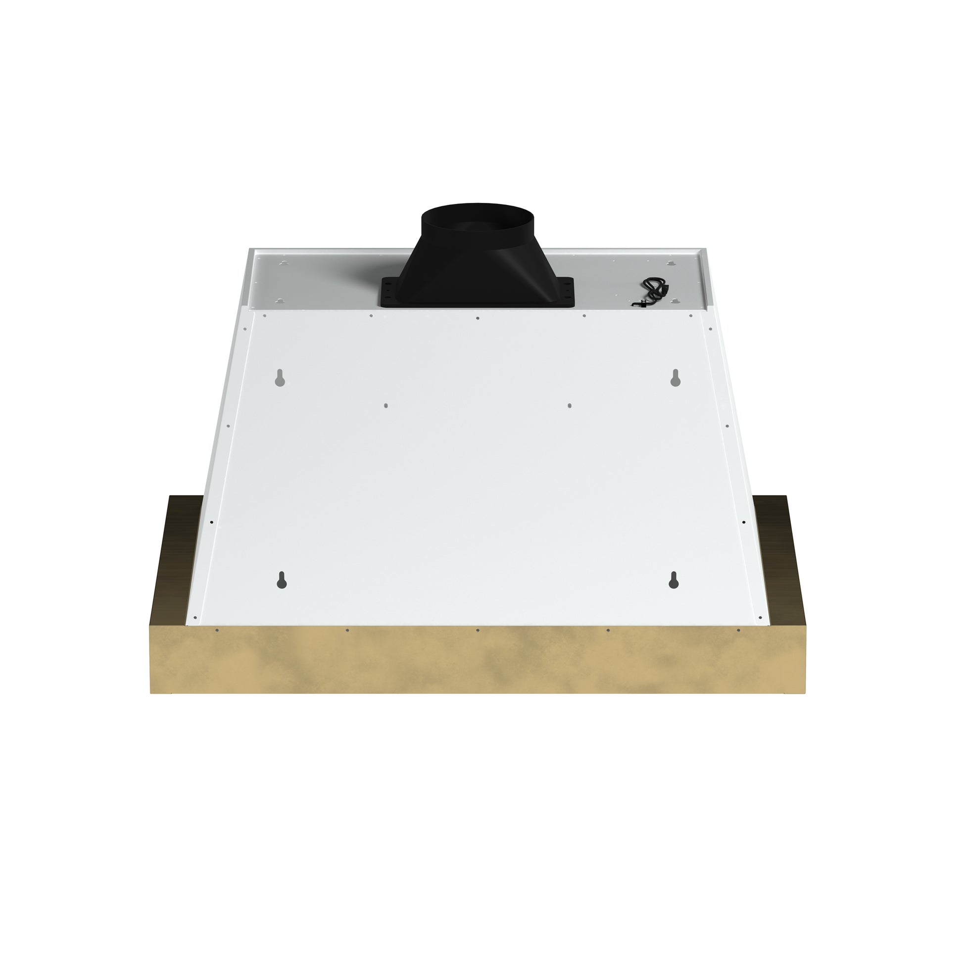 Campana extractora de pared Forno Vittorio de 36 pulgadas, blanca con detalles de latón antiguo, flujo de aire de 600 CFM, filtros deflectores aptos para lavavajillas, control remoto, ventilador de 3 velocidades, iluminación LED brillante.