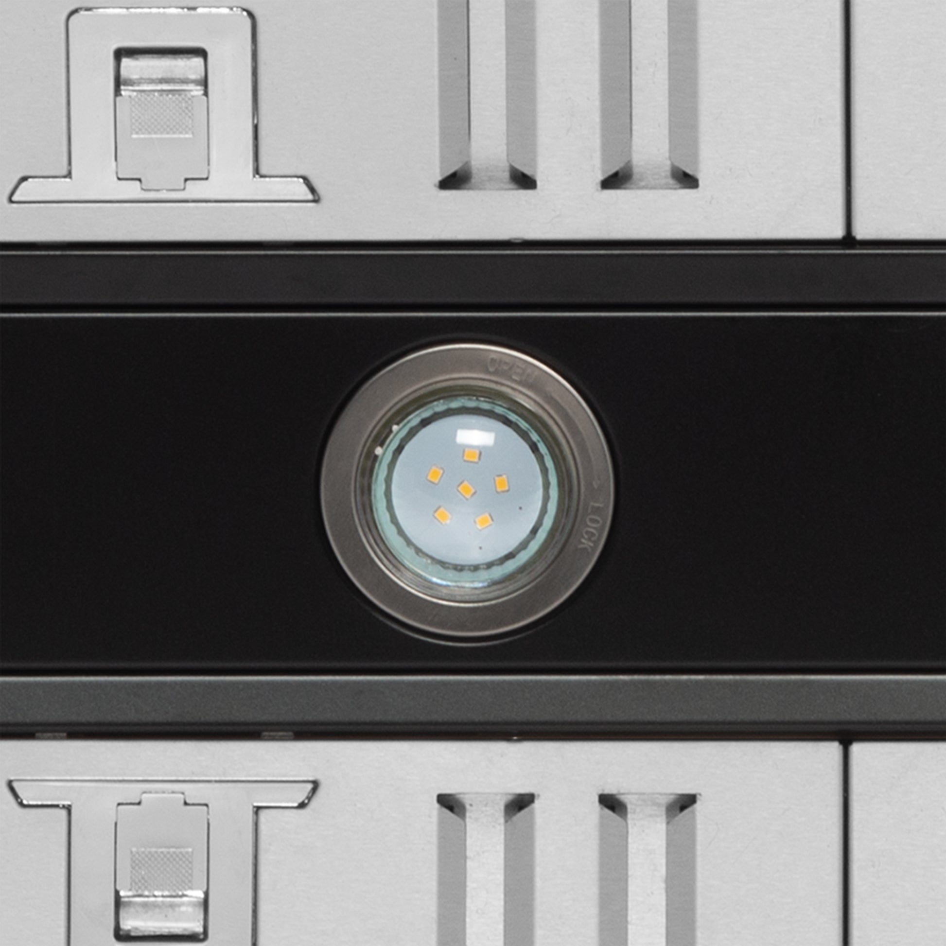 * Filtros extraíbles y lavables: Estos filtros son fáciles de quitar y limpiar, lo que hace que el mantenimiento sea sencillo y permite que la campana funcione al máximo rendimiento.