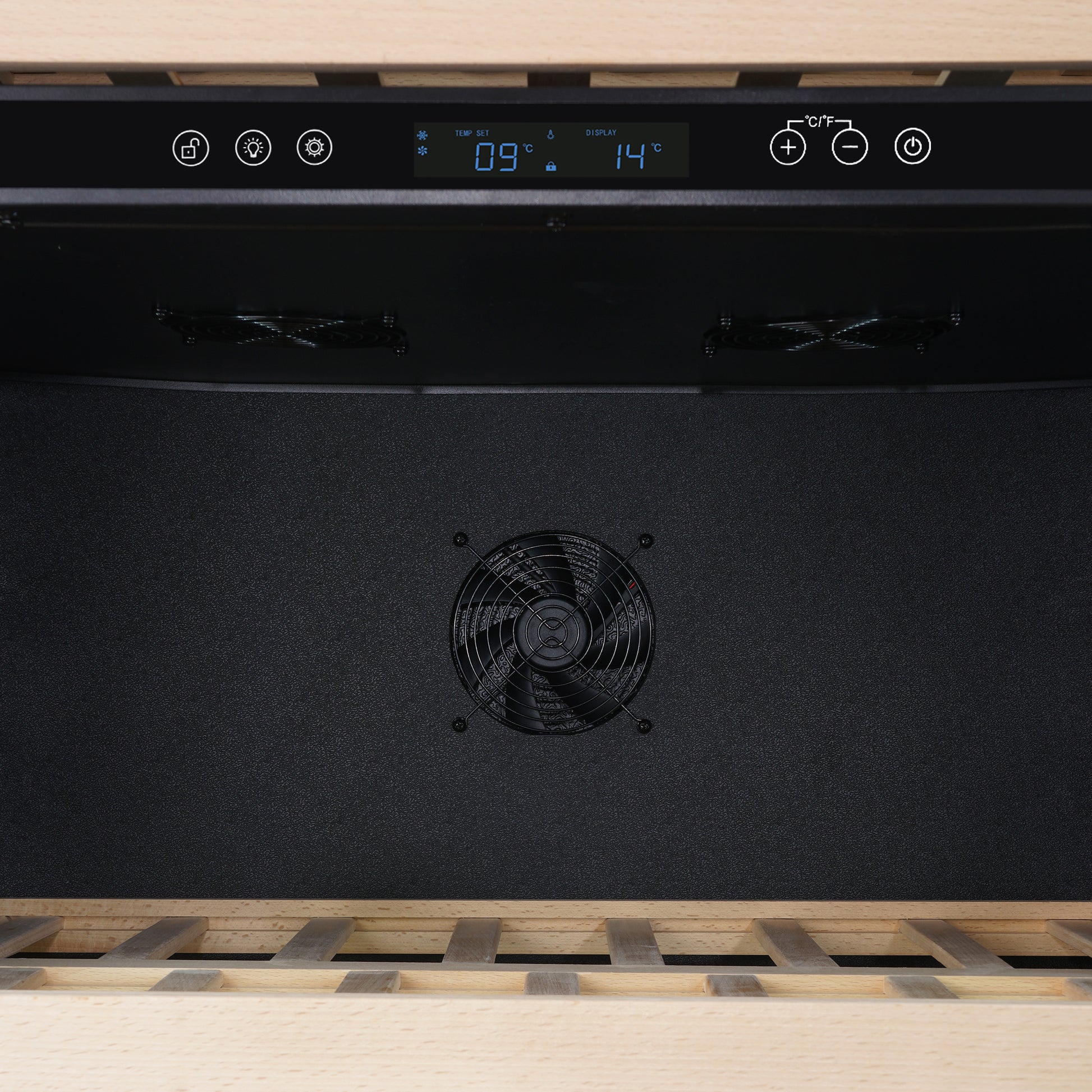 * Zonas duales para vinos tintos y blancos, cada una meticulosamente controlada para garantizar un servicio perfecto.