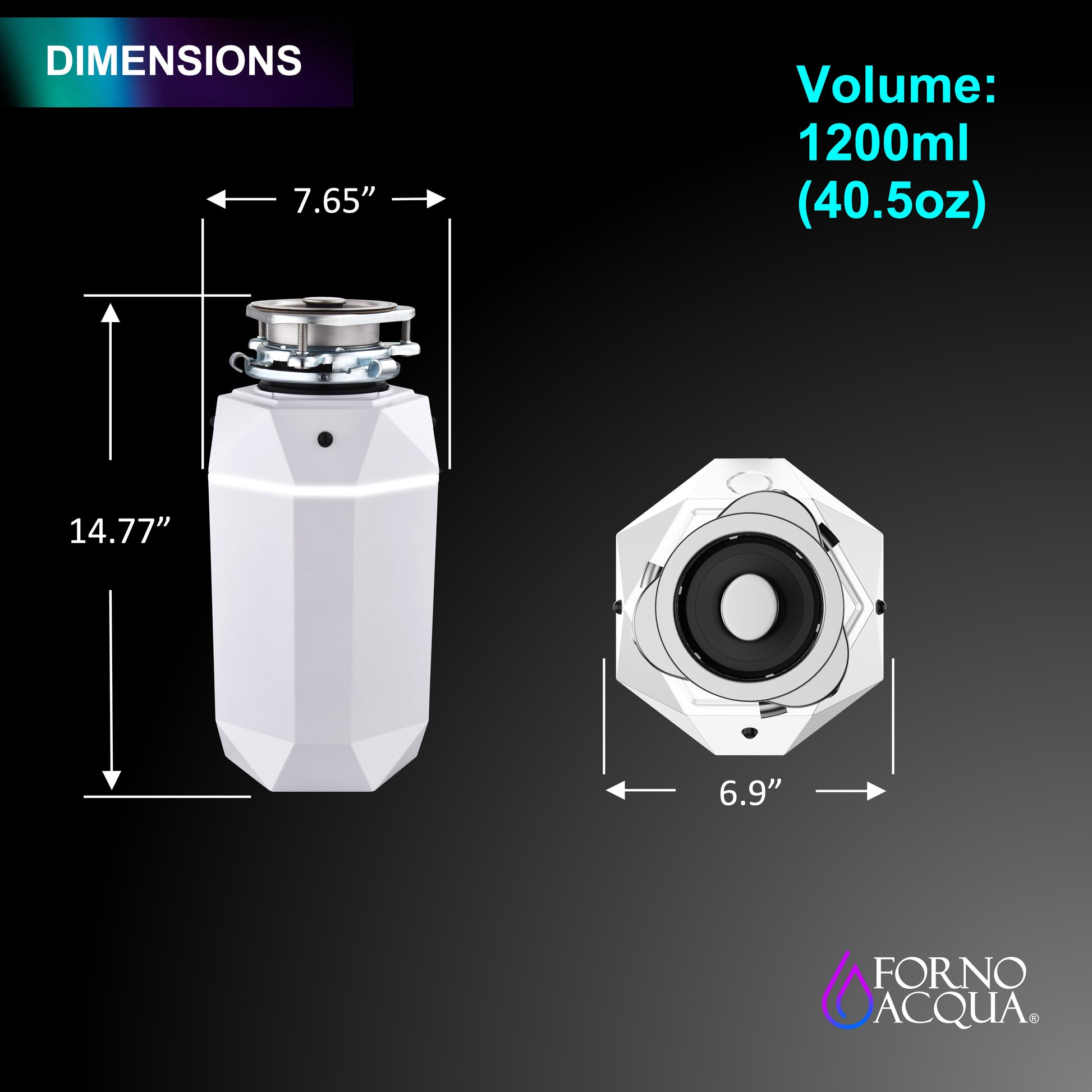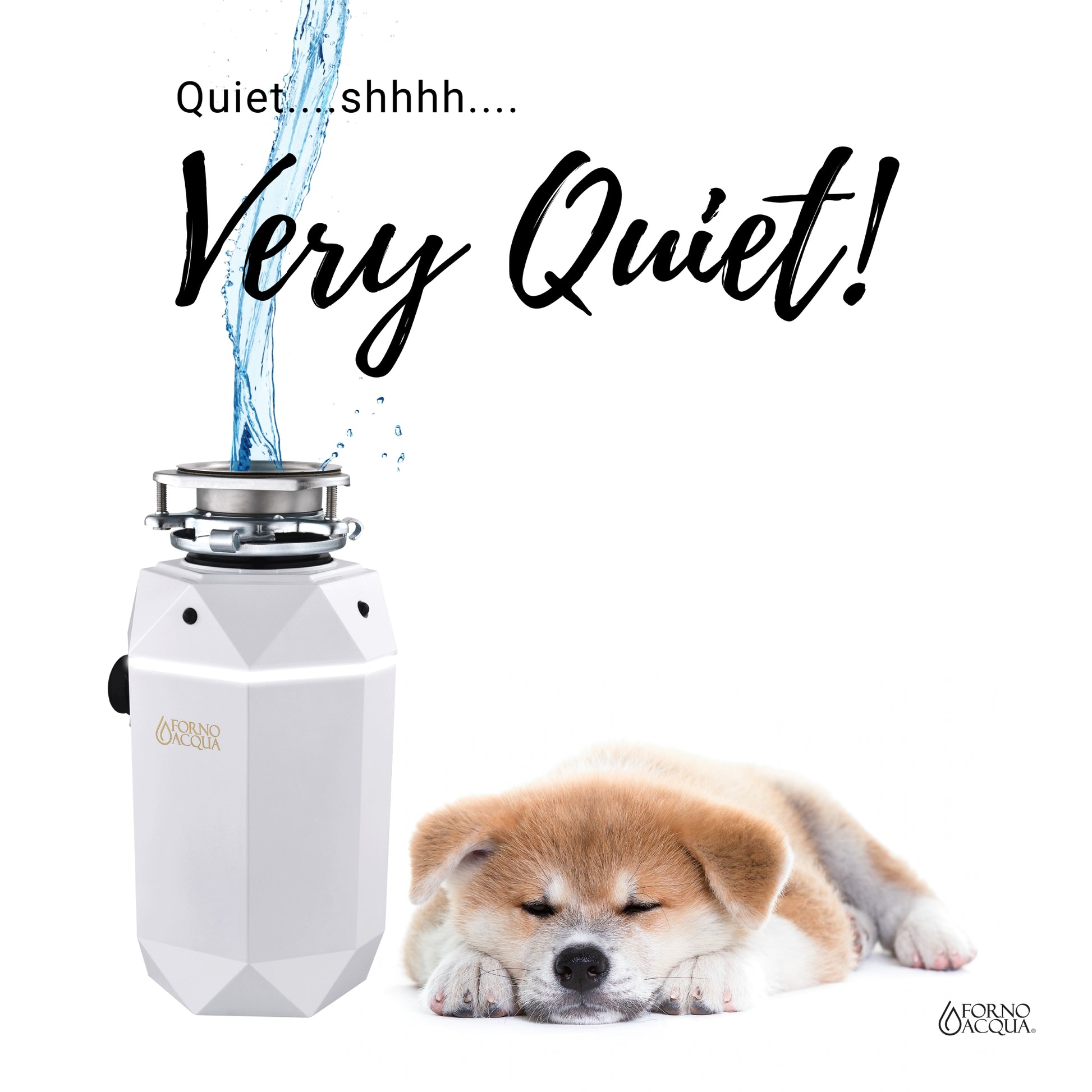 Triturador de basura ultra silencioso FORNO ACQUA BrightDIAMOND Moonstone de 1 HP con cable, sensor de movimiento, luz de gabinete e interruptor de aire precableado
