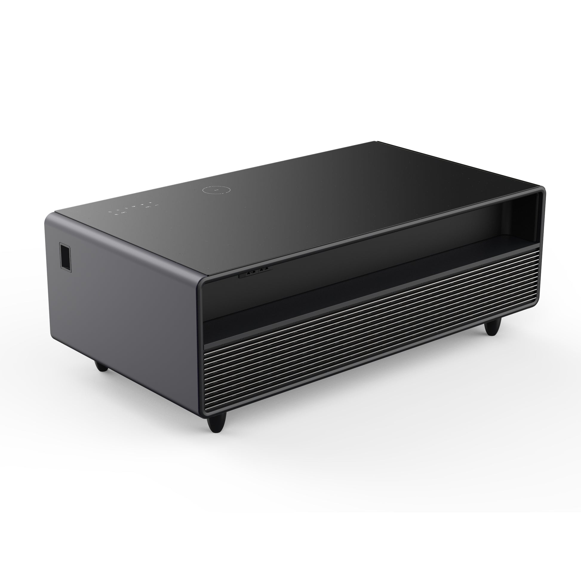 Table basse intelligente noire Forno Evoluto Tavolo de 51 pouces – Deux tiroirs réfrigérés, audio Bluetooth 5.0, chargement sans fil et éclairage d'ambiance RVB