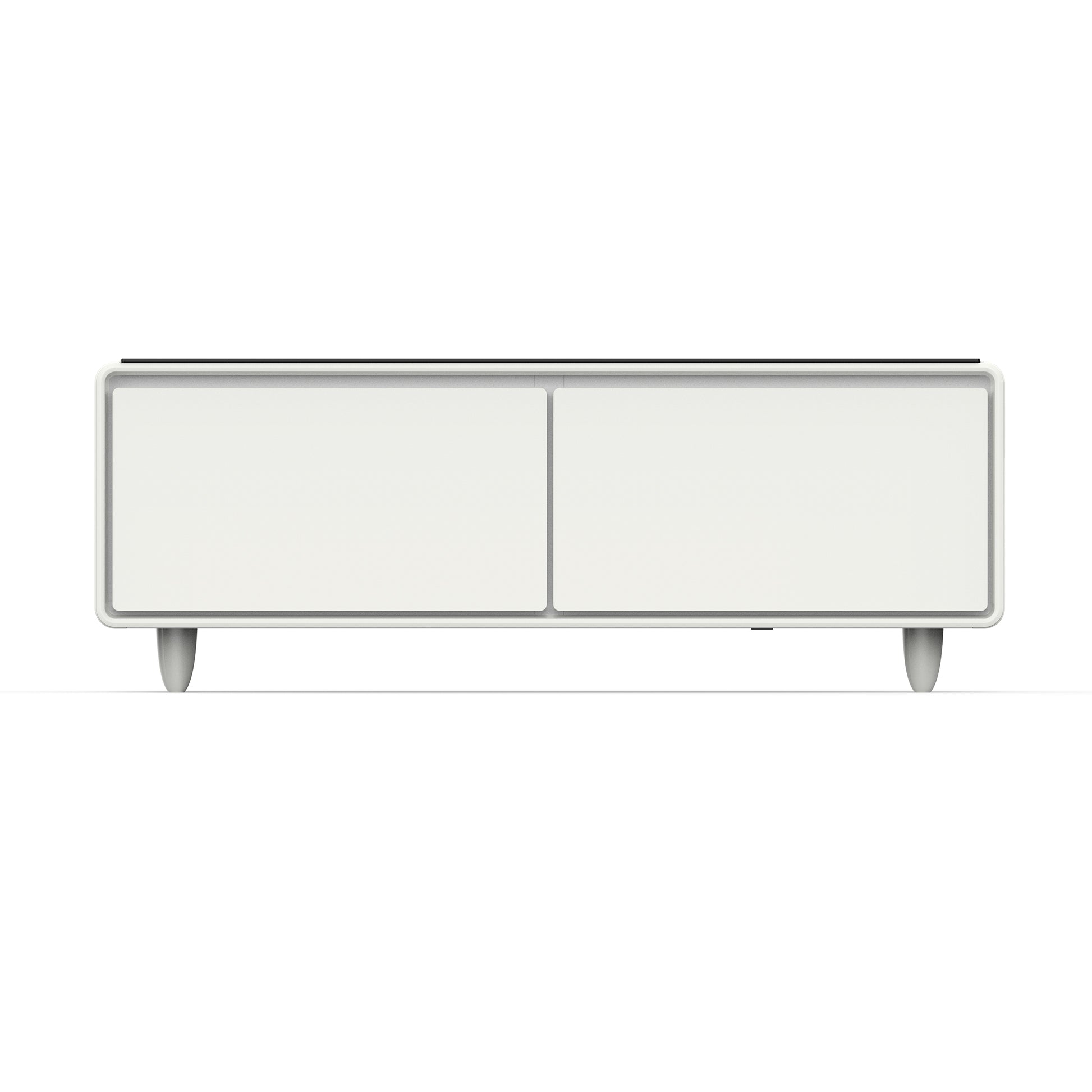 Table basse intelligente blanche Forno Evoluto Tavolo de 51 pouces – Deux tiroirs réfrigérés, audio Bluetooth 5.0, chargement sans fil et éclairage d'ambiance RVB