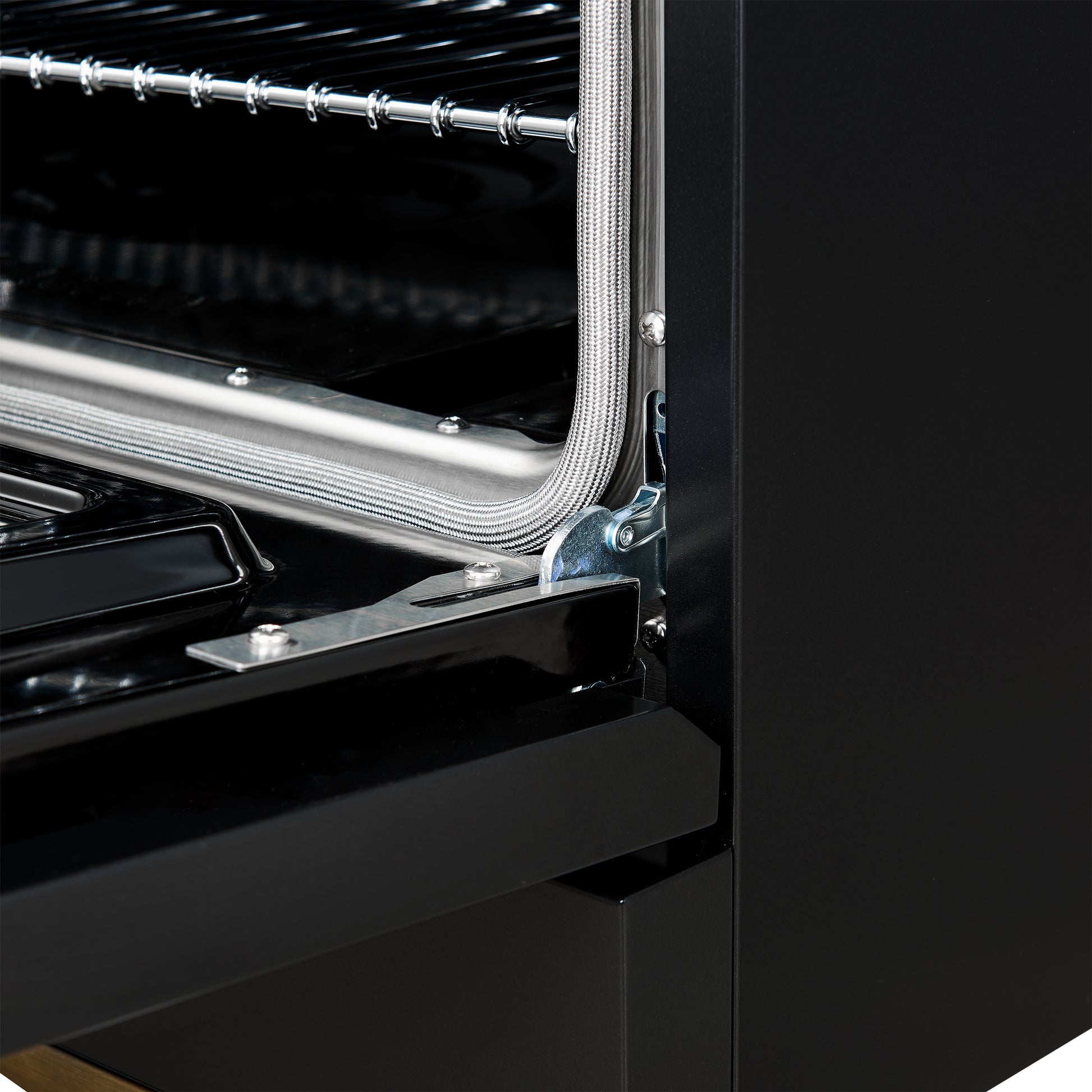 * La table de cuisson en émail noir encastrée en profondeur contient les déversements, ce qui rend le nettoyage rapide et sans effort.