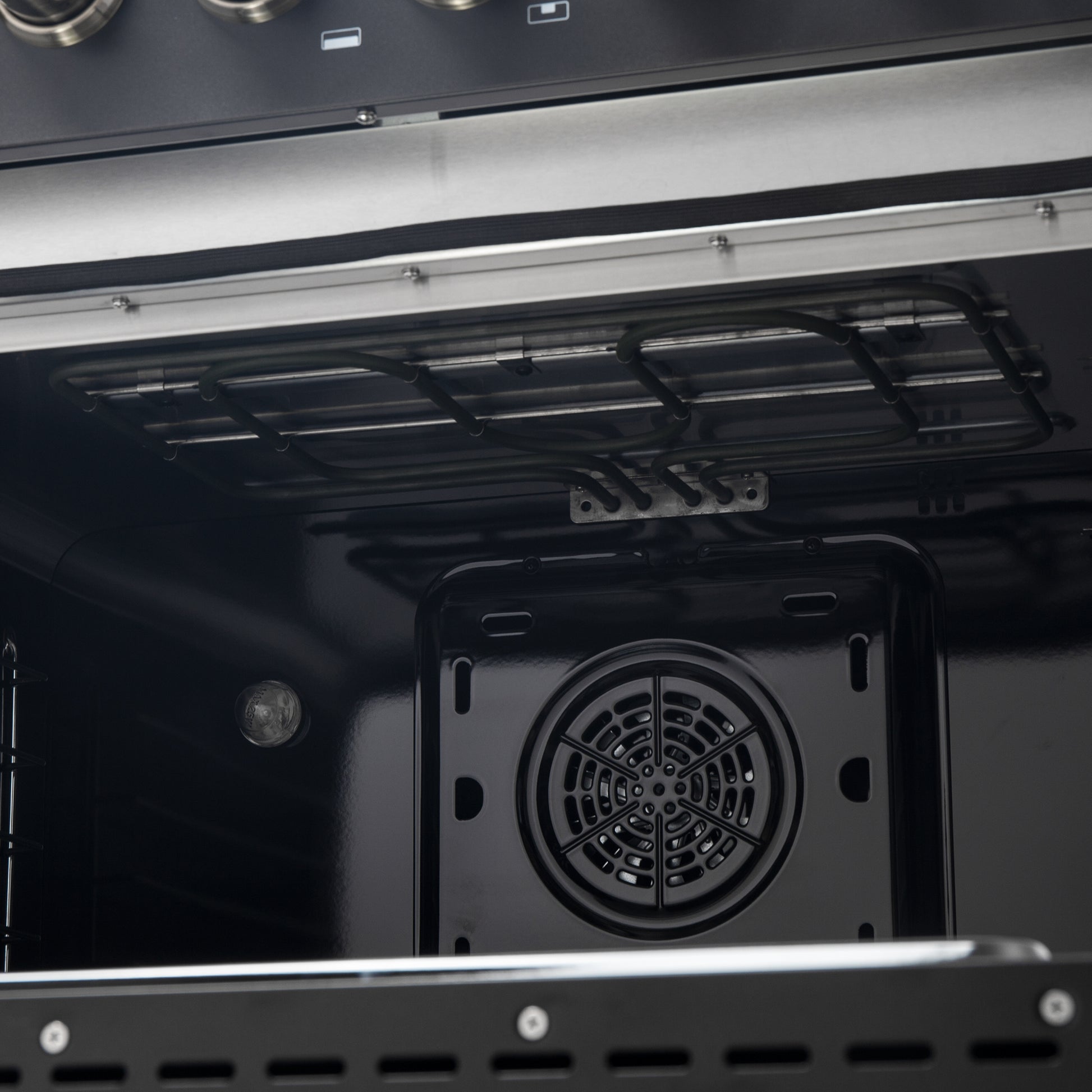 Cuisinière bi-énergie Forno Galiano de 36 pouces, design noir et laiton antique, 6 brûleurs scellés, 83 000 BTU, four à convection véritable de 5,36 pi³
