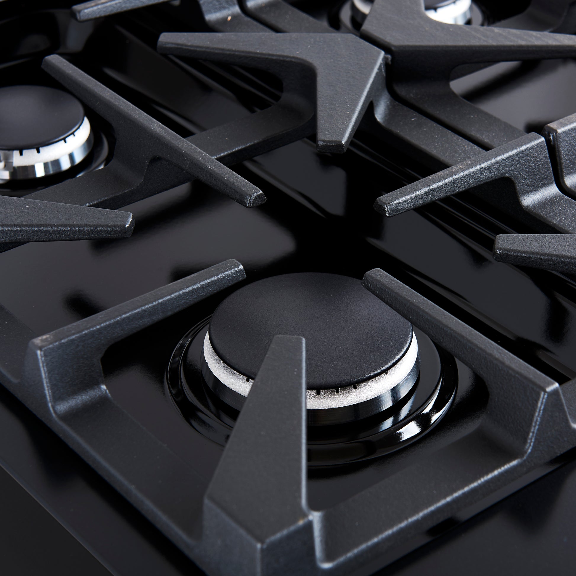 * La table de cuisson en émail noir encastrée en profondeur contient les déversements, ce qui rend le nettoyage rapide et sans effort.