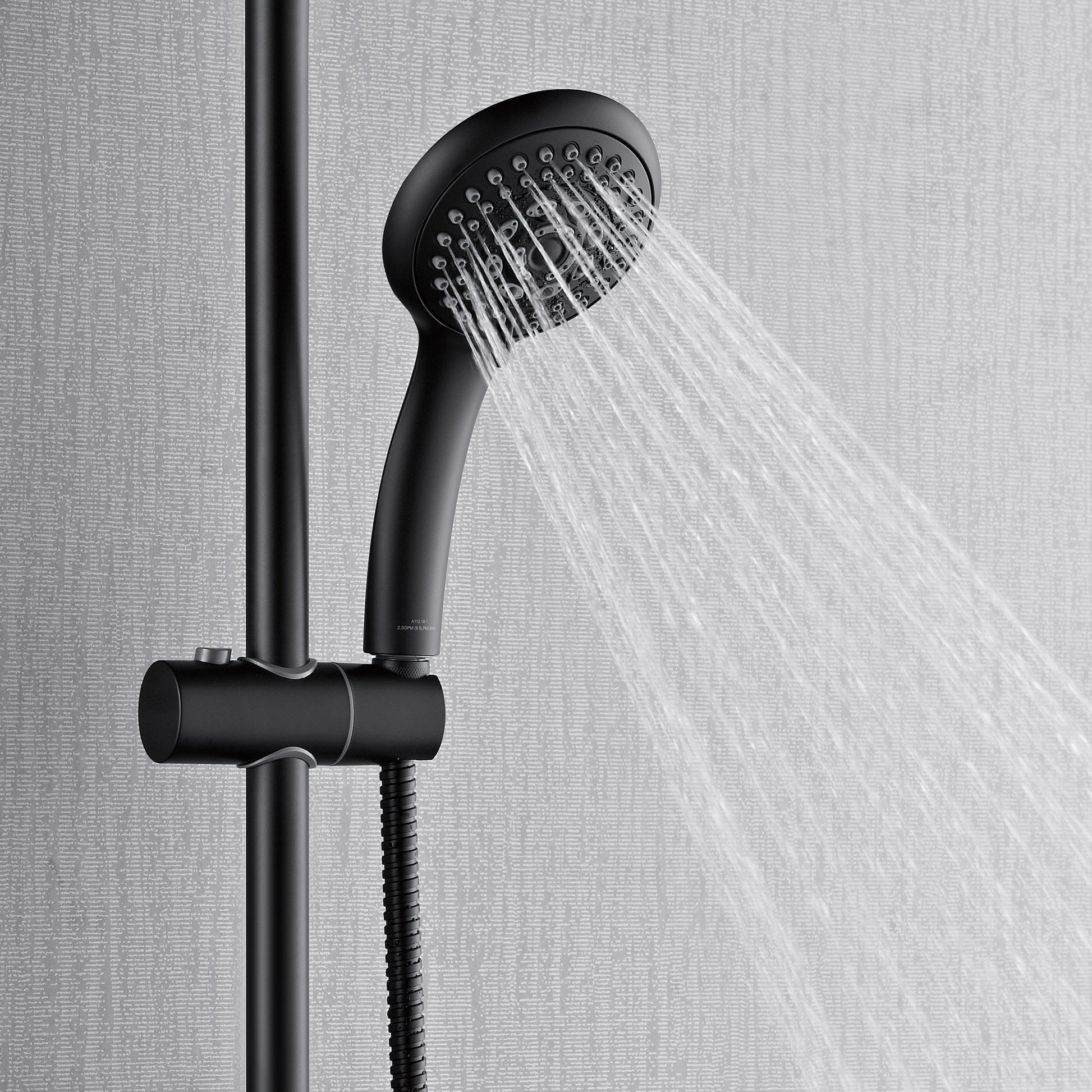 Forno Acqua AcquaFALL Shower, Matte Black Finish, Overhead Rainfall Shower, 7 Way Diverter, Handheld Shower Head, Body Jets, 1.8 GPM Flow Rate