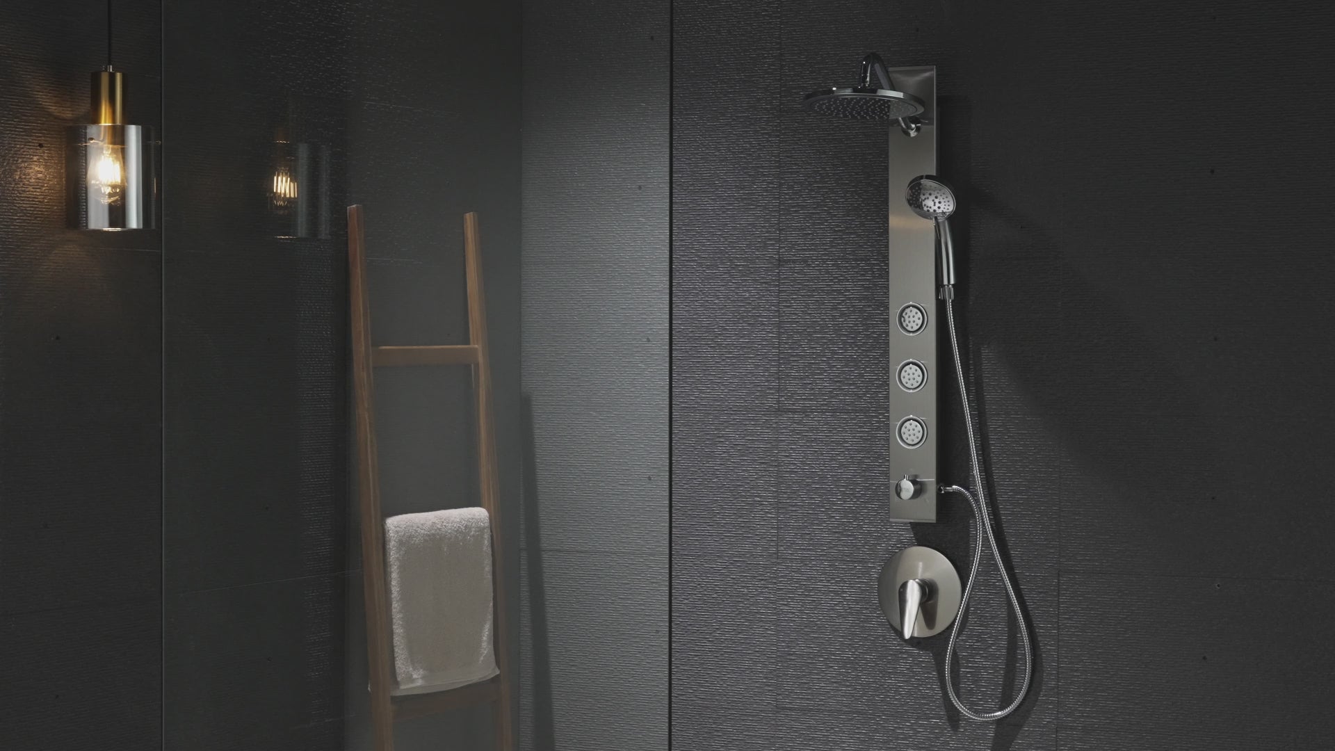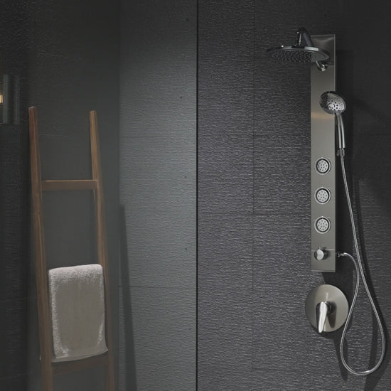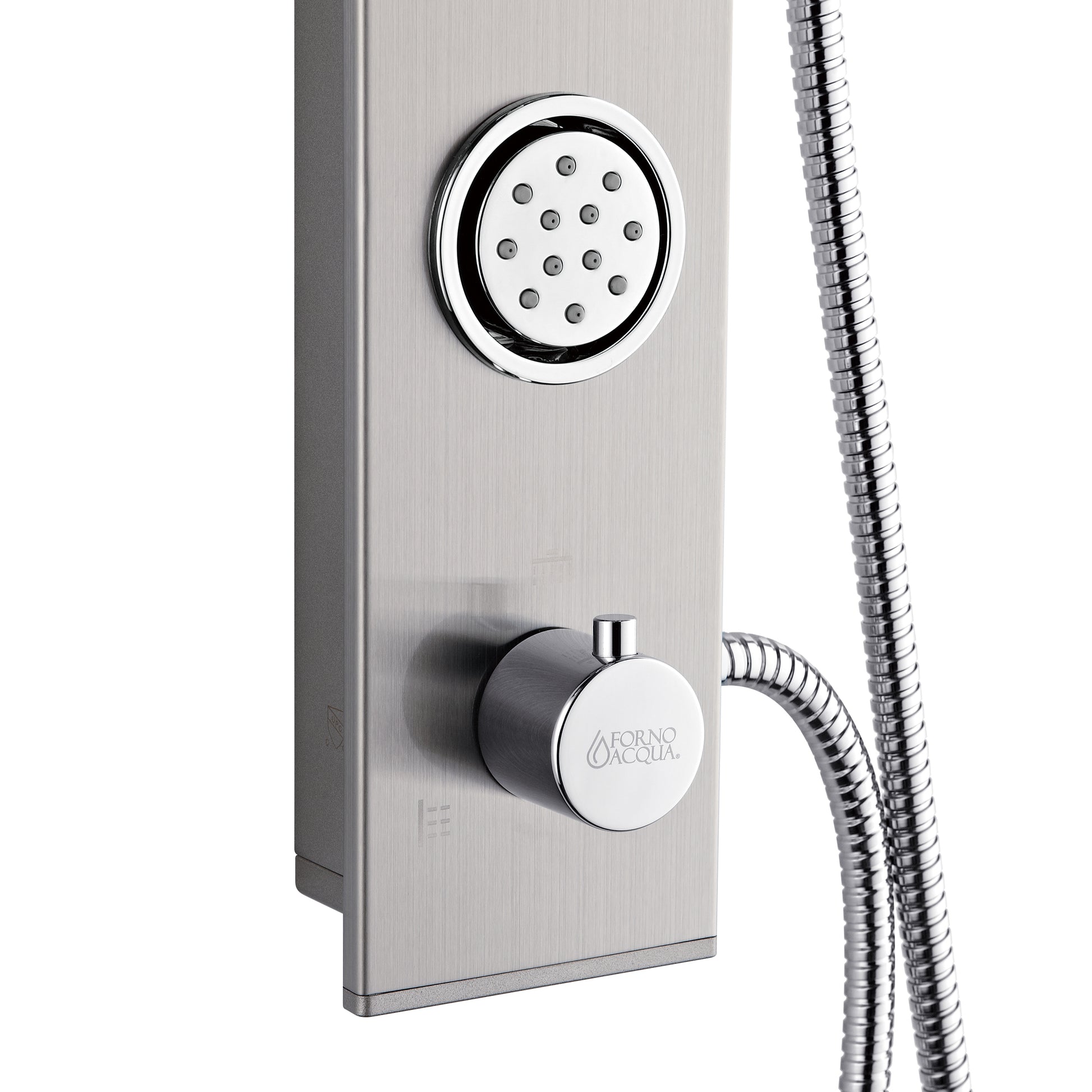 Forno Acqua AcquaSPA Shower Panel in Stainless Steel, Overhead Rainfall Shower, Handheld Shower Head, Body Jets, 6 Way Diverter, 2.5 GPM Flow Rate