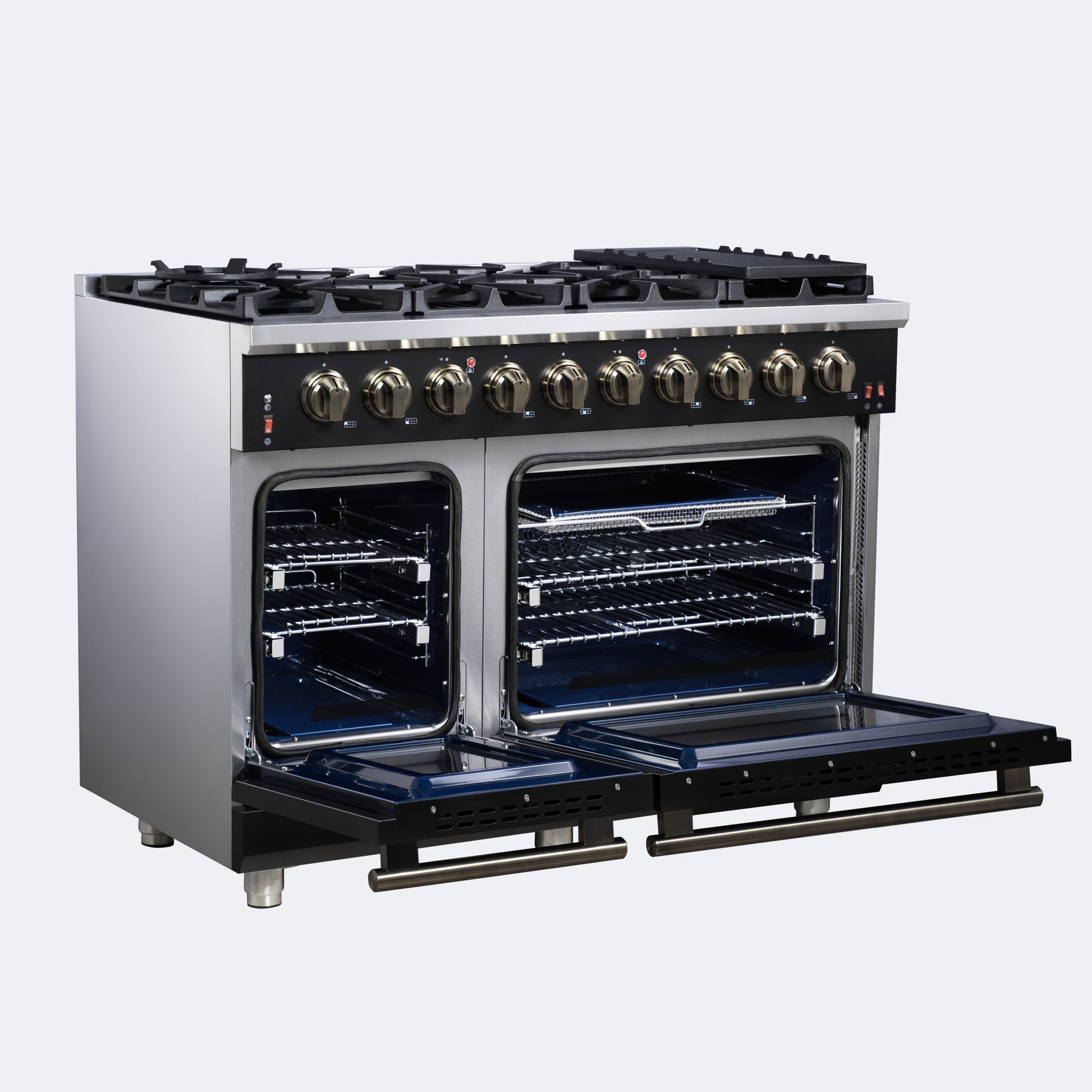 Cuisinière à gaz autonome noire Forno Massimo de 48 pouces, 8 brûleurs, four à convection véritable