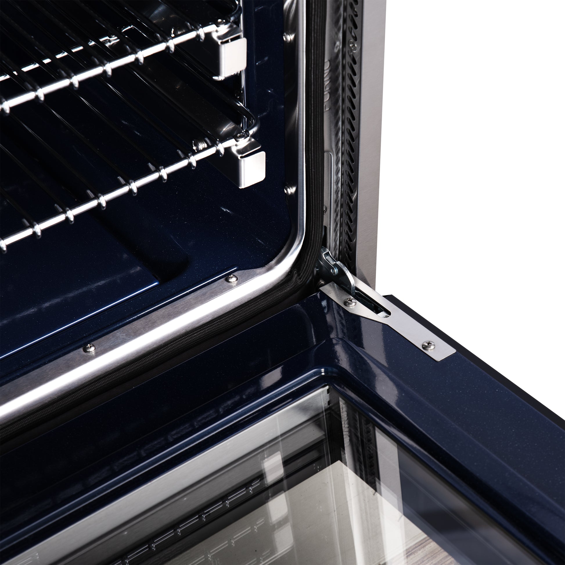 * Speckled blue enamel oven of 4.32 Cu.Ft with convection fan & 30,000 BTU Total Broil and Bake output