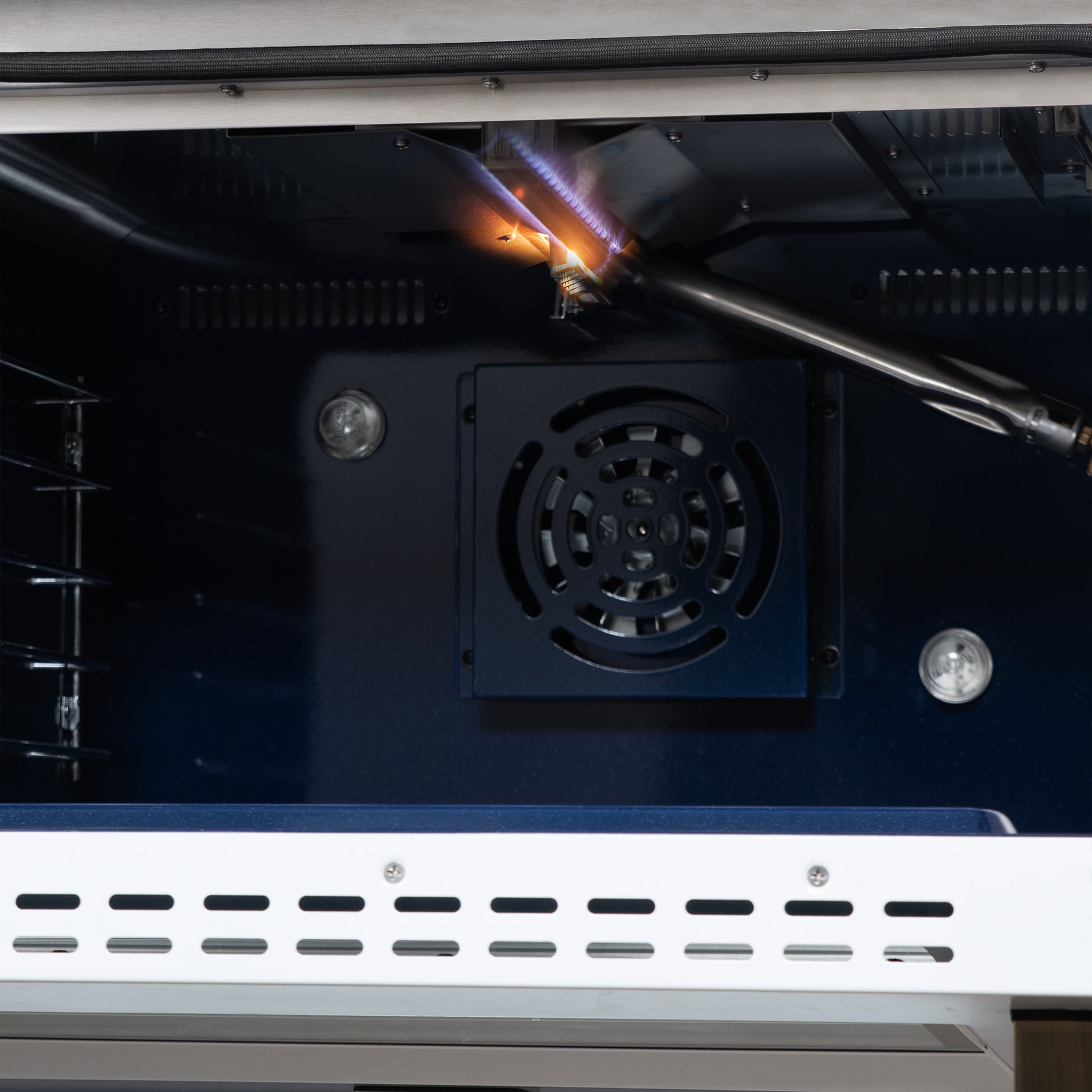 * 4.32 Cu.Ft Convection Fan Oven with 30,000 BTU Total Broil and Bake output, additional 2.26 Cu.Ft. Oven with a 14,000 BTU Bake output.