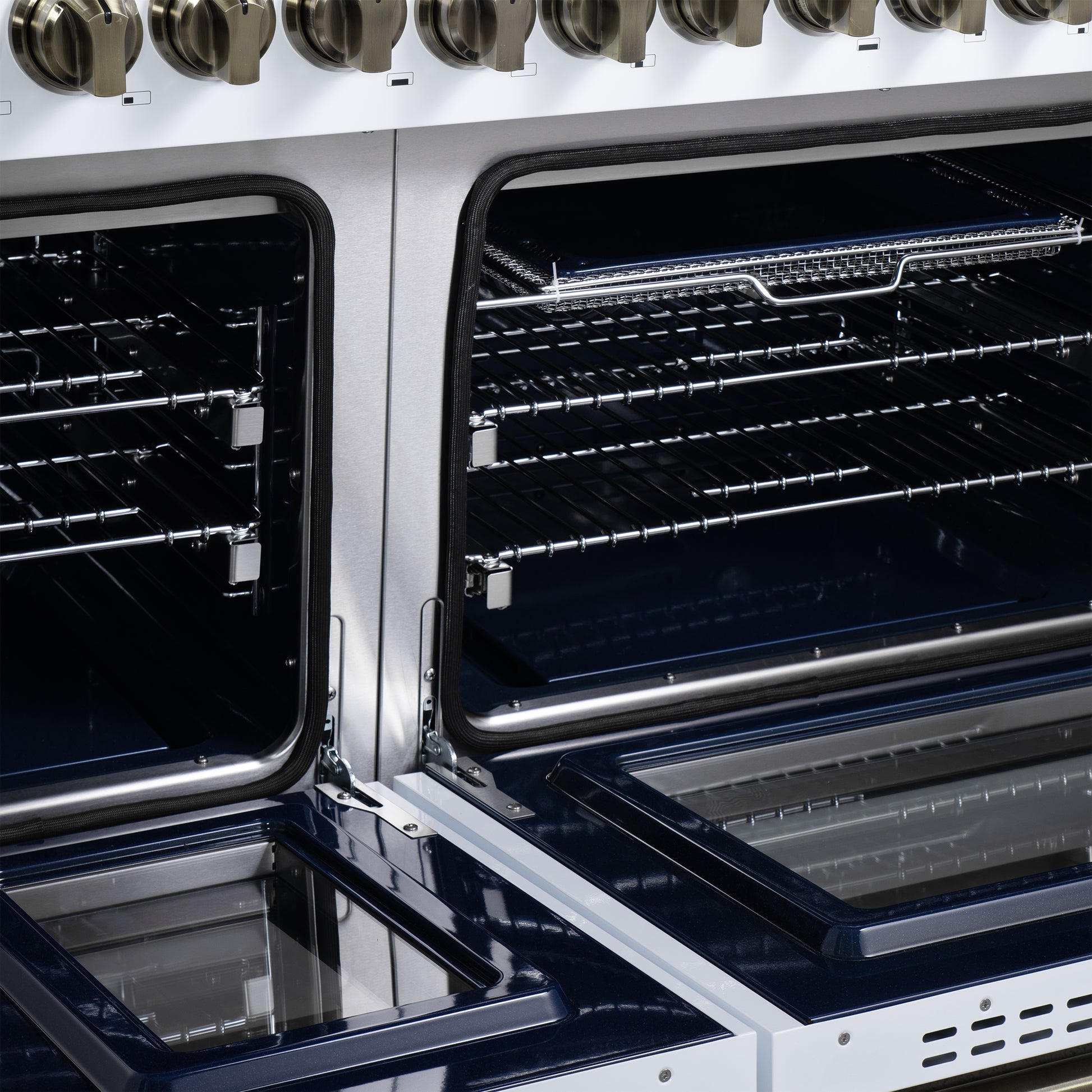 Forno Massimo 48-Inch White Freestanding Gas Range, 8 Burners, True Convection Oven
