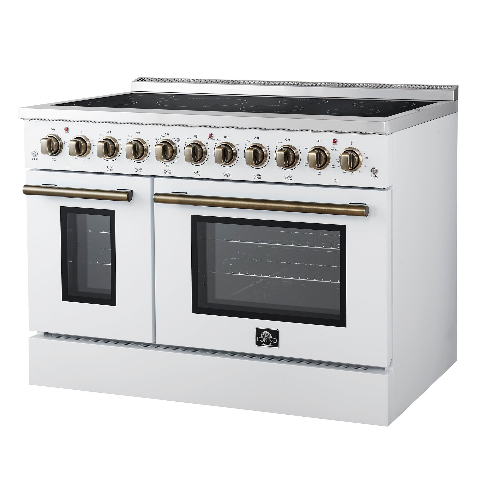 Forno Paolo 48 Inch Freestanding Electric Range in White with Antique Brass, 6.7 cu.ft, True Convection Oven, Energy Efficient