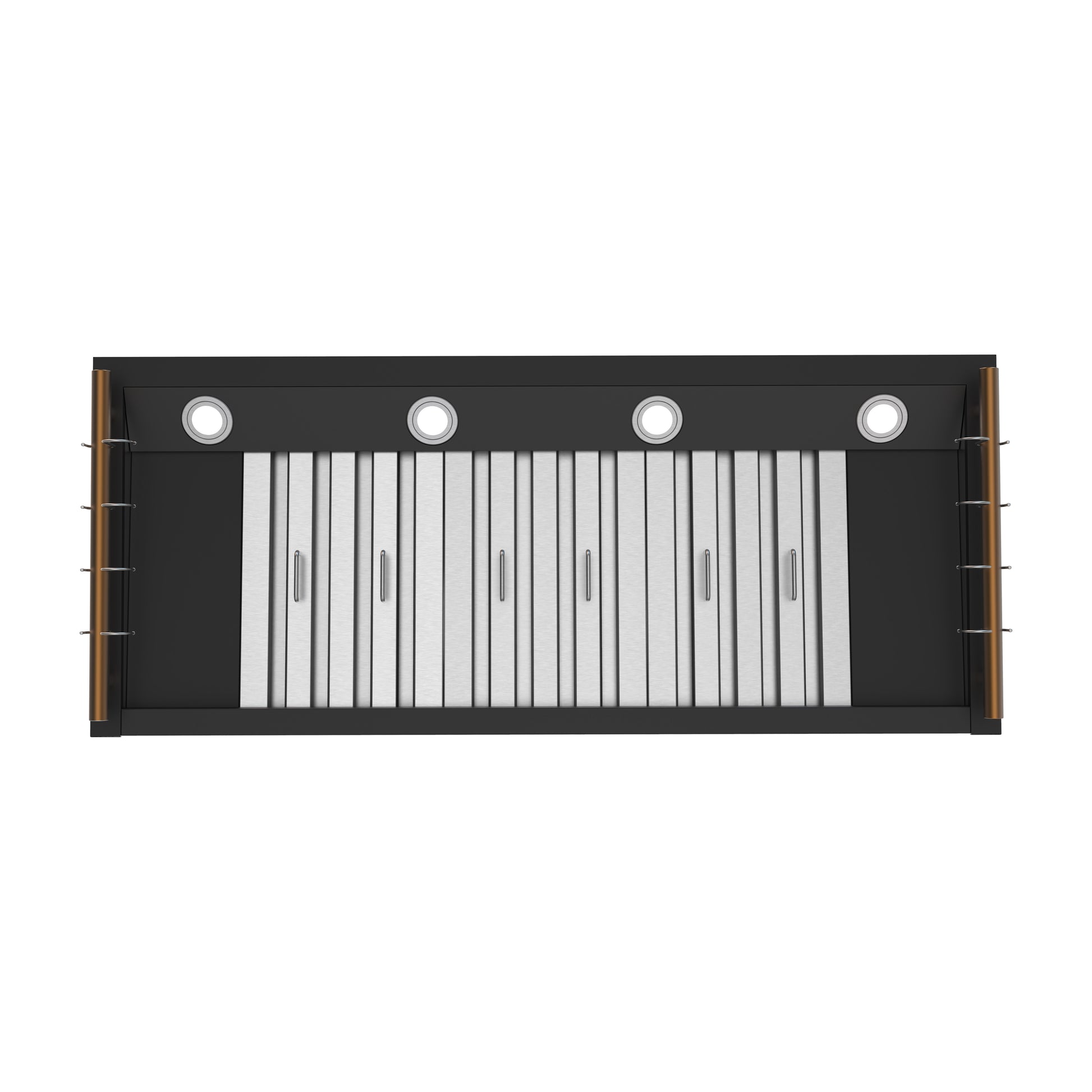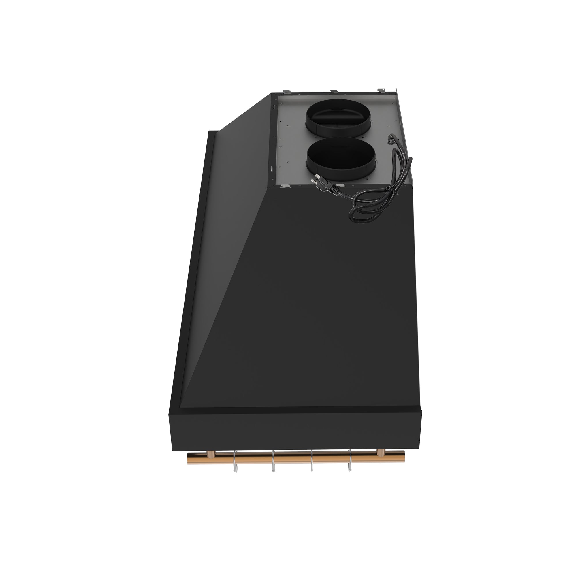 Forno Venezia 48 Inch Wall-Mounted Range Hood in Black with Antique Brass Accessories, Touch Controls and Baffle Filters